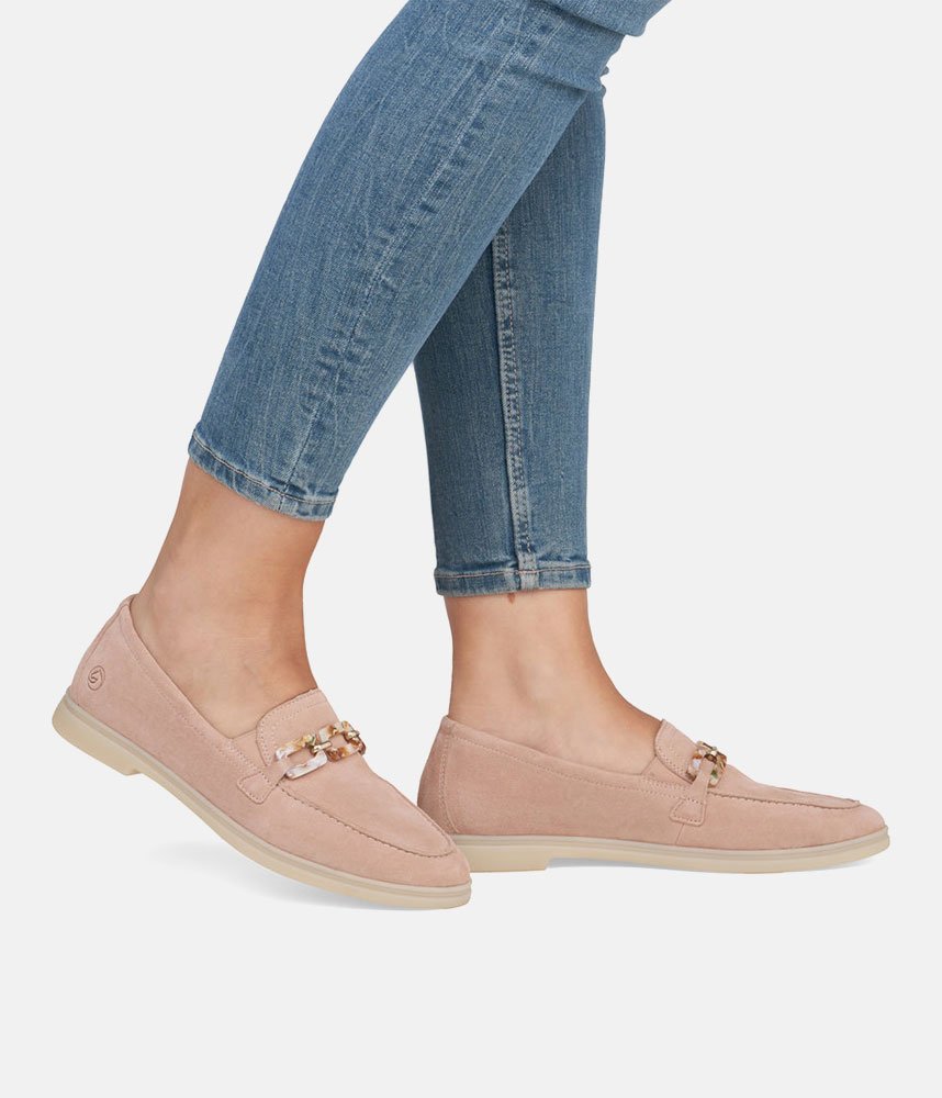 This Loafer from Remonte is a stylish and comfortable choice, offering a perfect mix of modern elegance and everyday practicality. These loafers feature a luxurious suede upper that adds a feminine and sophisticated touch, making them versatile for both casual and dressy occasions. The colorful chain detailing across the upper adds a trendy and fashionable element, giving these classic loafers a modern update. With a cushioned flat sole, these loafers provide comfort and support, making them ideal for all-day wear.