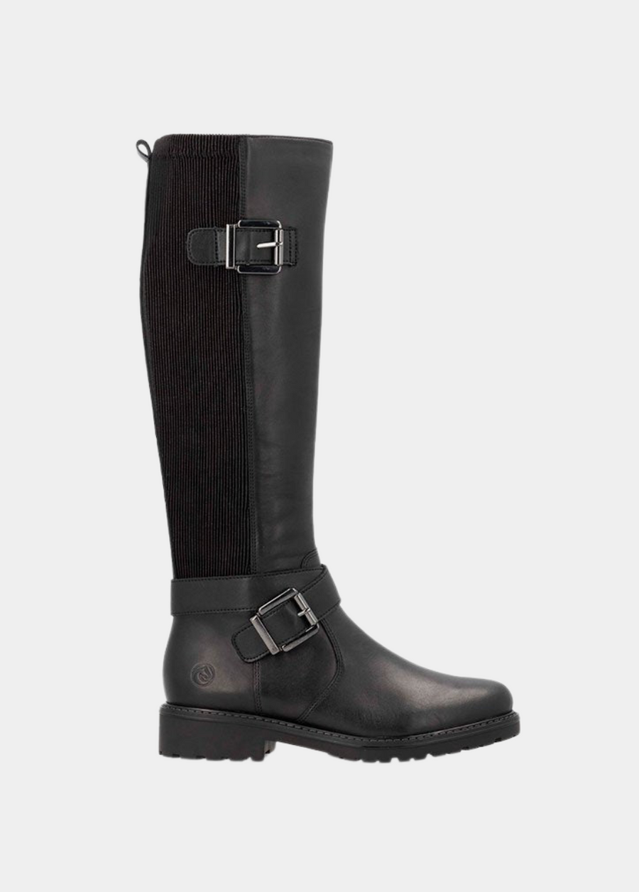 This is a Beautiful Long Leather Boot from Remonte with a full-length side zipper and Decorative buckles on the Upper. The elasticated side panel allows for adjustment in the width to suit your calf creating the perfect fit. In addition, the cosy lining lends softness and warmth and the removable cushioned footbed absorbs shock and stress.