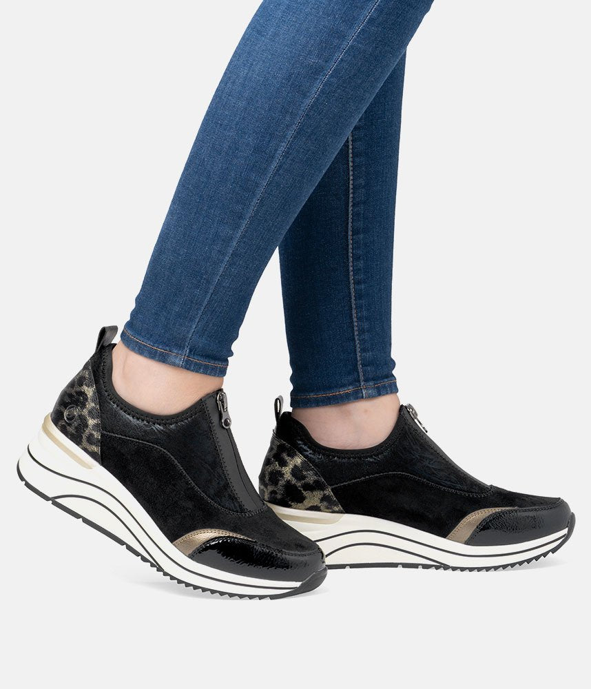 This is a lovely new model from Remonte with a stylish wedge sole, with a combination of upper and front zip fastening for easy on and off. The contrasting wedge heel is lightweight, flexible, and shock-absorbing and the memory foam insole is removable.