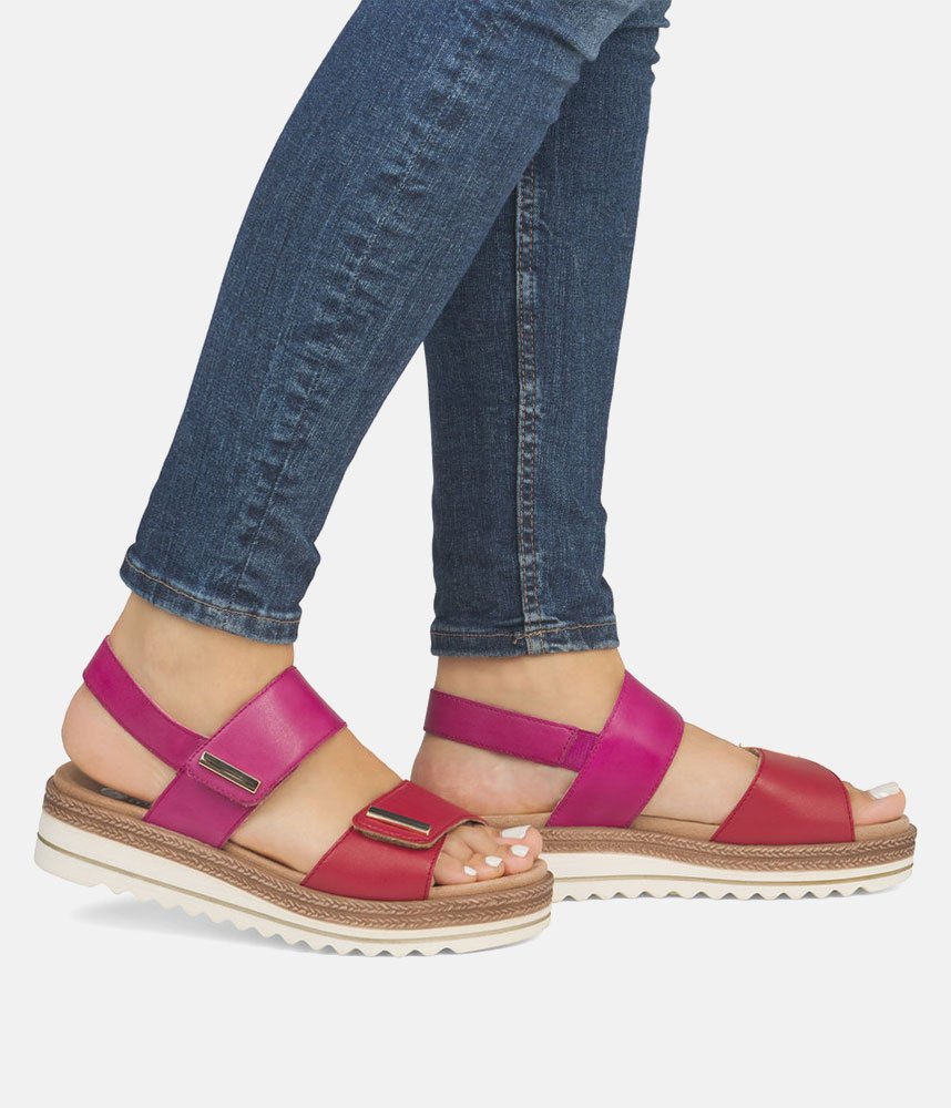 This is a Modern new style from Remonte featuring Velcro straps and a contrasting cork and white outsole. Featuring a shock absorbing insole which is light and flexible. They are not just stylish, but practical for everyday use. Ideal to pack for a vacation to pair with just about any outfit from shorts to long dresses and Jeans.