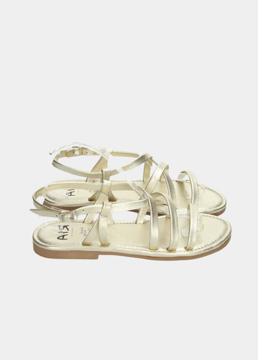 Elevate your everyday with this versatile champagne-colored sandal. Its sleek metallic design is enhanced by a stylish arrangement of crisscrossing straps, offering both visual appeal and enhanced foot support. Whether you’re dressing up or keeping it casual, this sandal is an ideal choice. The added padded insole guarantees comfort that lasts all day long.