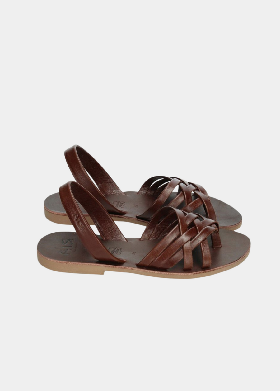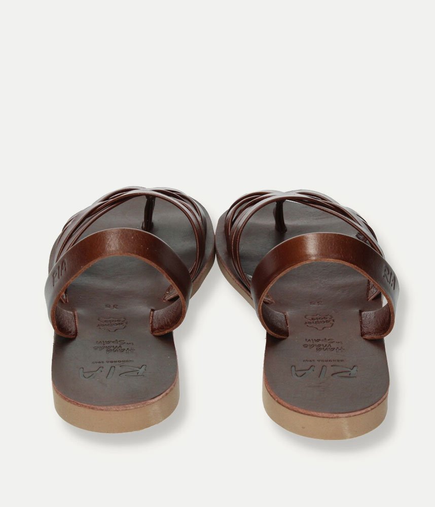Step out in style with these Ria sandals inspired by the Menorcan abarca, crafted from a lovely Chestnut leather with braided straps that ensure a perfect fit. Perfect for adding a touch of warm sophistication to your everyday look.. This style provides comfort and style and is ideal for any outfit to offer a balance of versatility and comfort.
