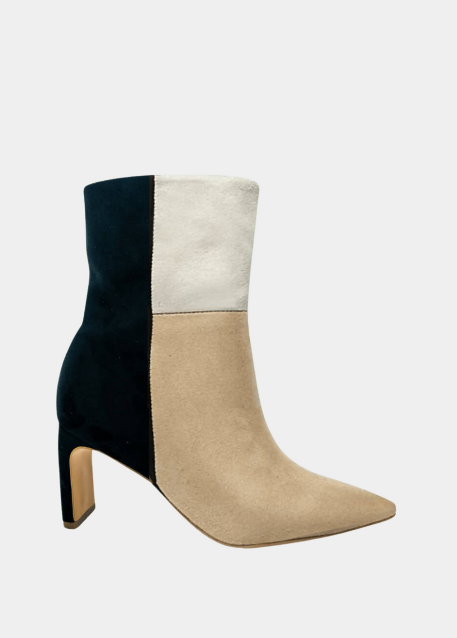 Simone (Nude) is a runway-worthy bootie that is ready to take on any task in style. Her colorblock design showcases a bold, eye-catching look that flatters your figure. You will fall in love with its warming suede material and comfort cut when wearing this bootie. She's designed to easily pair with any ensemble by incorporating your neutral colors of cream, nude, and black. The slim block heel allows you to achieve the sleek, thin heel look without actually having to sacrifice comfort. Whether you are headed to the office or out on the town, you are sure to be the #corporatebaddie. Simone means business, and this shoe is designed for those who are meant to handle them properly.
