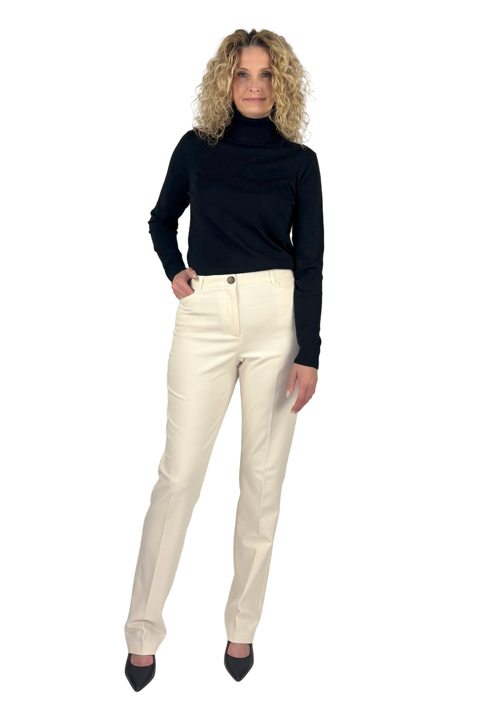 The Signature line combines premium fabrics and craftmanship with the comfortable fit you've come to know. Crafted of a textured luxury twill which is soft, stretchy and drapes beautifully. Sleek, tailored style with a straight cut leg that flatters long legs. Zip fly and button closure, front slant pockets, belt loops and back welt pockets make this a perfect pant for the office and beyond.