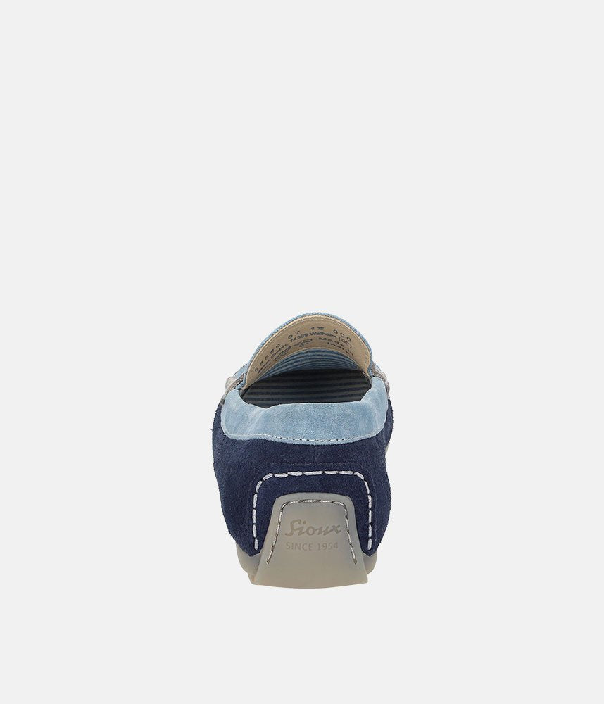 This is a Super stylish flat slip-on shoe from Sioux in a moccasin style made of elegant calf suede with an on-trend penny-loafer trim. Lined throughout with fabric and features a soft, cushioned removable insole, a soft rubber sole, and the comfy G width ensures a roomy fit at the toes.