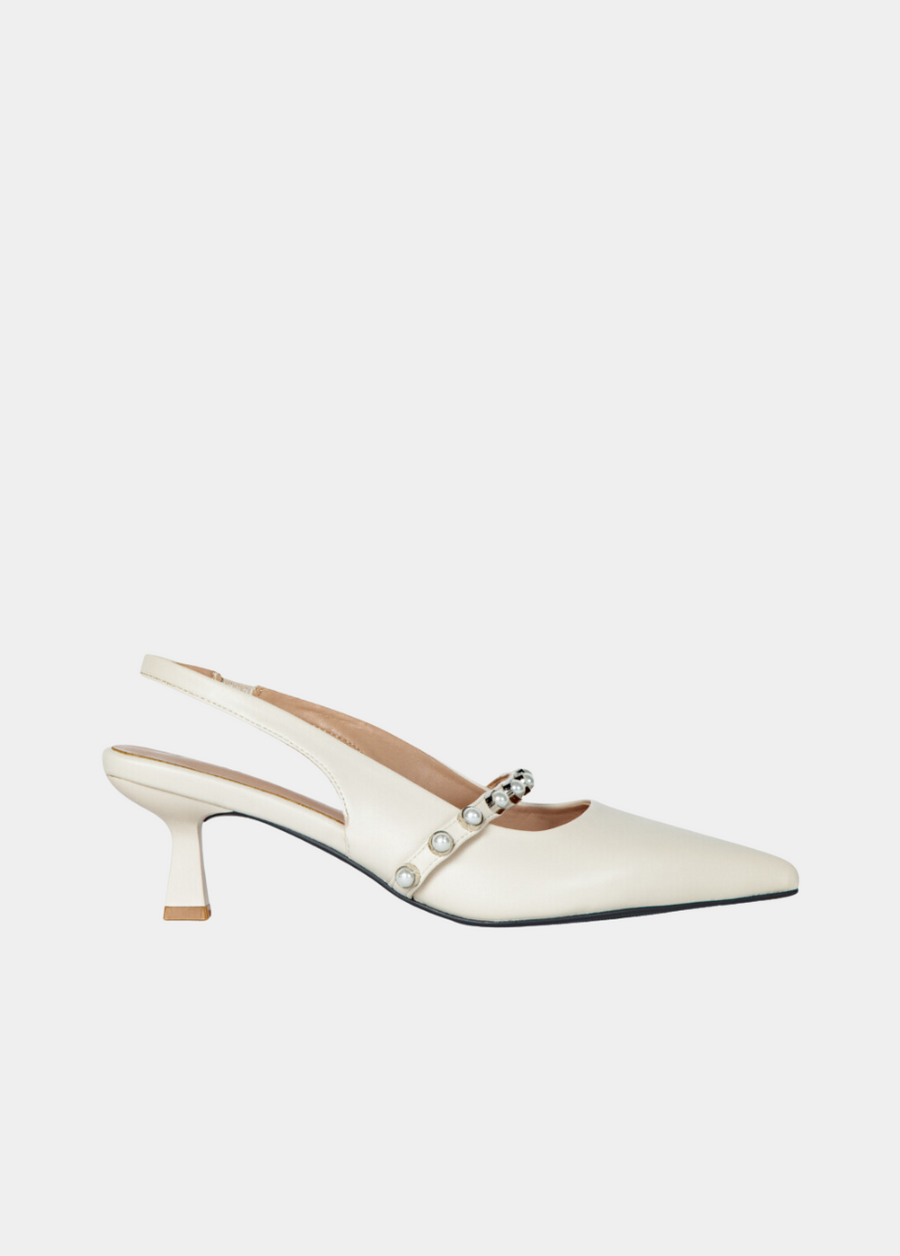 Embrace every occasion with Sophia Slingbacks Ivory. Pearls and comfort in perfect harmony to take on anything life throws your way with confidence and grace. So slip on a pair of Sophia slingbacks and let your inner fashionista shine with effortless elegance.
