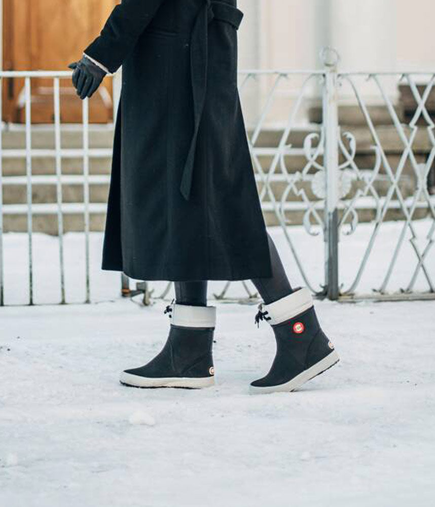These Finnish favorite rubber boots from Nokian are ideal for outdoor and city use! This style is a classic with a new twist and is now available with a warm lining. Street fashion since 1968, this iconic Hai rubber boot is an easy to put on boot with a collar and is suitable for all conditions. The Textured rubber surface and high-friction rubber outsole is ideal for winter. Easily recognizable from its design, these boots are lightweight, comfortable, and easy-to-wear boot for all purposes.
