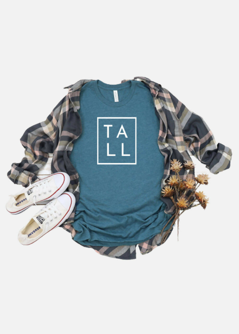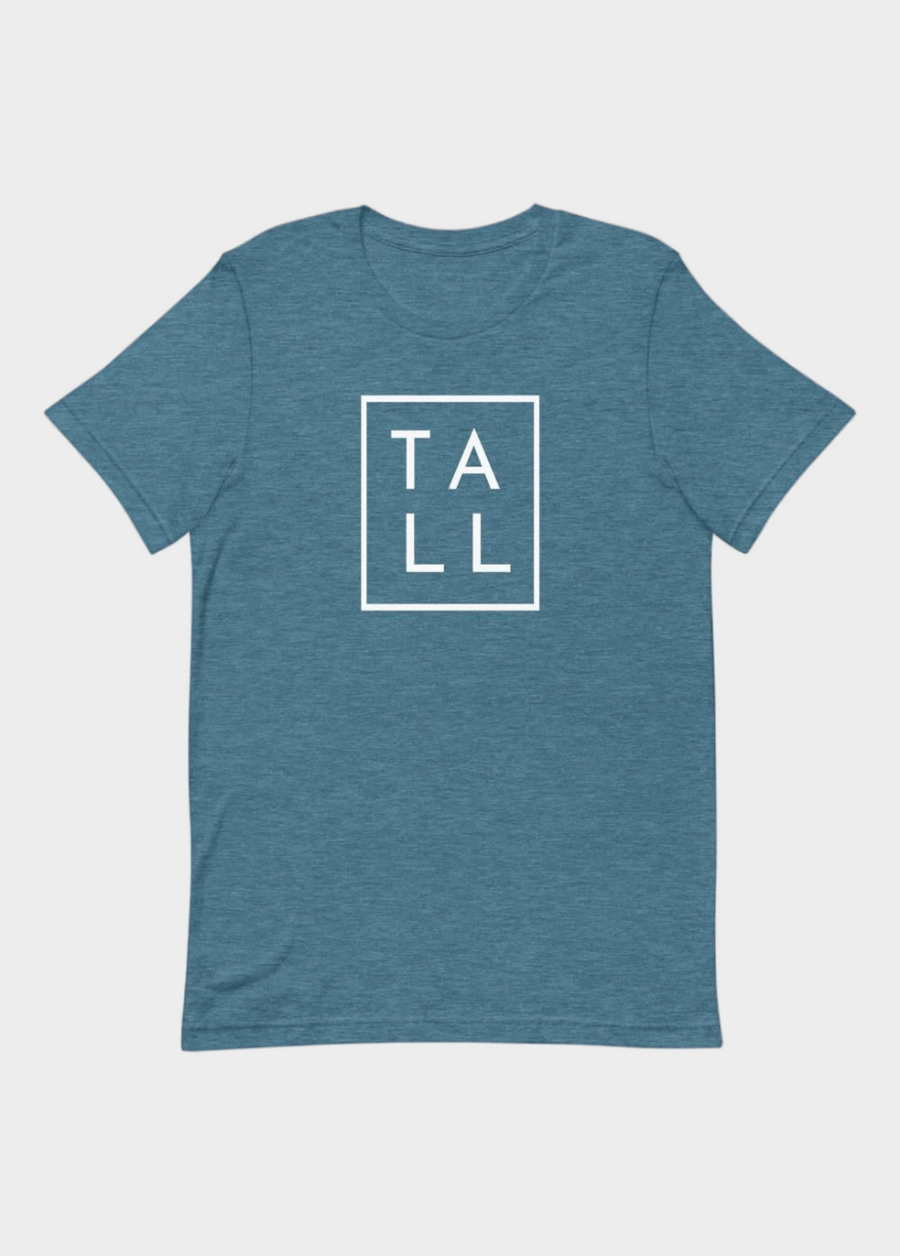 Take pride in your height with this unisex graphic t-shirt that displays the straightforward word "TALL" in a clean-cut outlined box.  This design may be minimal, but it is far from understated.  Passersby will take notice of the confidence you place on just being who you truly are.