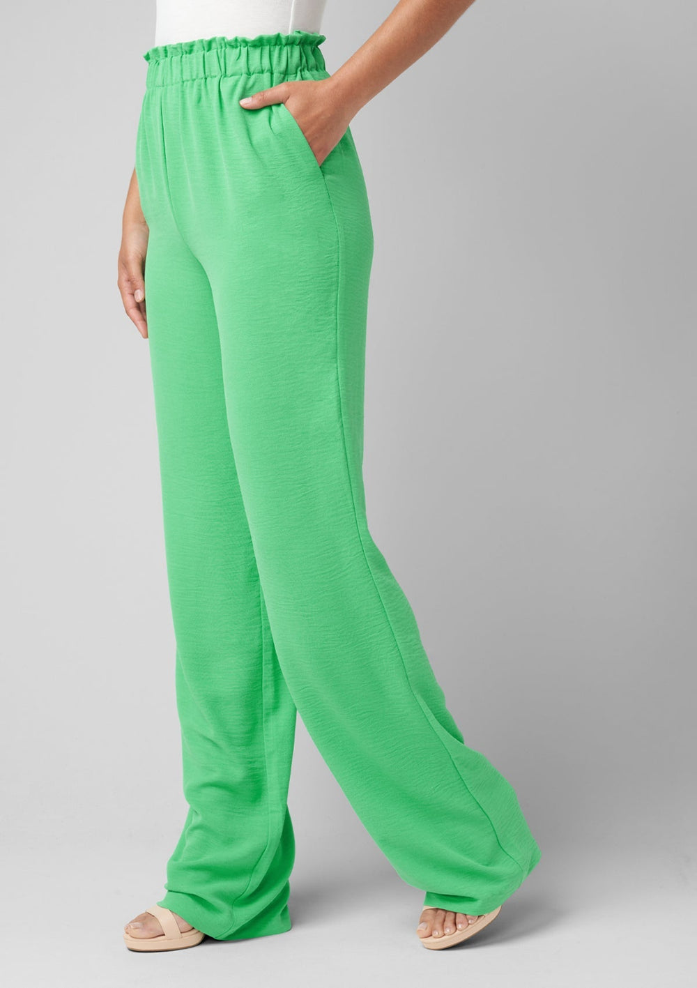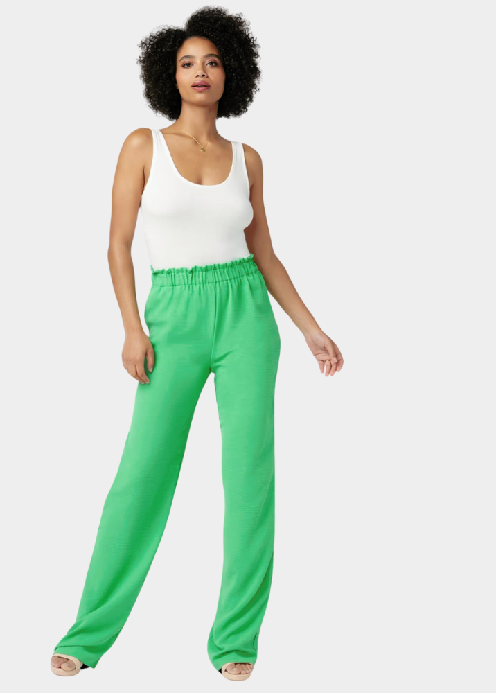 The Brooke pants feature a wide leg silhouette with a scrunch elastic waistband (pull-on) and front pockets, designed to keep you comfortable and stylish no matter the occasion. Crafted from a lightweight airflow material, these pants are perfect for warm weather. The wide leg design provides a sleek and sophisticated look, while the scrunch elastic waist ensures a comfortable and secure fit.
