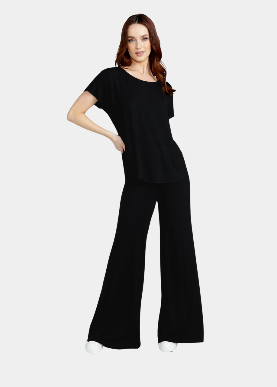 The ultimate loungewear top, designed to make you feel relaxed yet fashionable. The Evelyn scoop-neck top features a loose and effortless silhouette, with dropped shoulders that add a relaxed vibe. The scoop neckline adds a touch of femininity to the top. Made with soft and breathable fabric, this top is designed to keep you comfortable all day long. Pair it with the Evelyn wide leg pants for the comfiest loungewear set!
