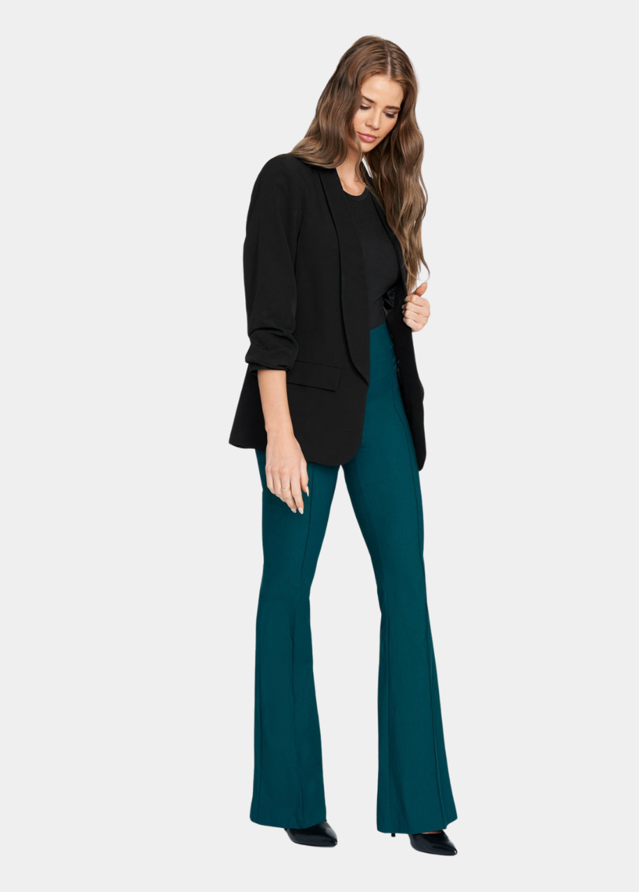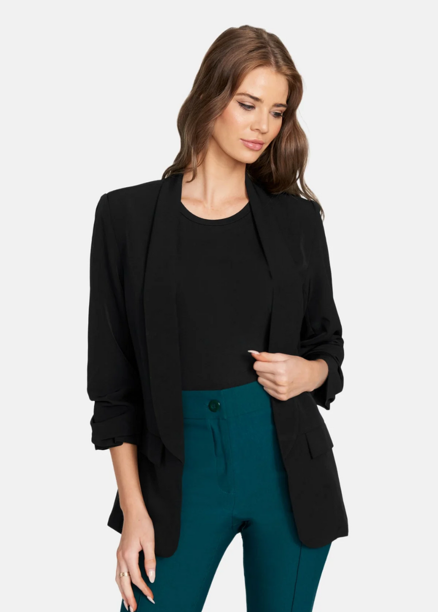A season-less silhouette. The Katherine blazer features an open front design, faux front pockets, scrunched ¾ sleeves, and a lightweight fabric giving you the perfect balance of softness and structure.