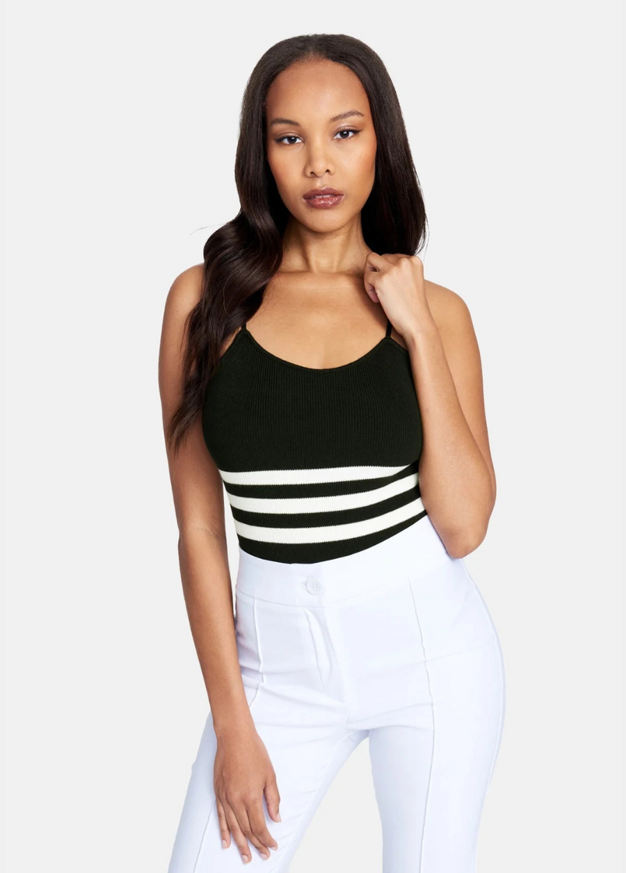 The Lauren bodysuit adorns a sweetheart neckline contouring the bodice. Featuring a striped design, soft knit material, and adjustable straps. This bodysuit makes putting together an OOTD effortlessly chic.