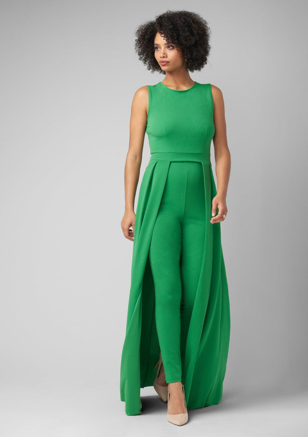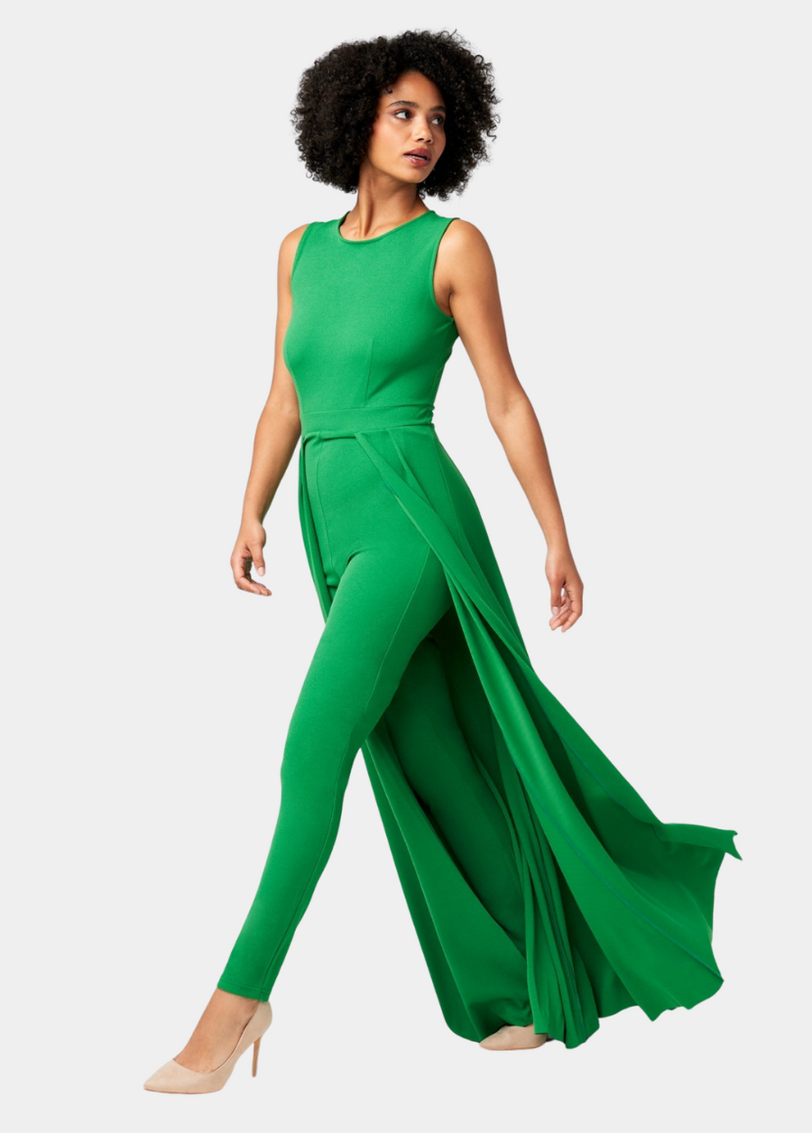 The Milan Jumpsuit is a fashion-forward piece that combines style and comfort in one beautiful design. Made from high-quality ponte fabric, this jumpsuit offers a luxurious feel and superior durability that will last for years to come. This is a statement piece that will turn heads and make you feel confident wherever you go. The skinny hems give it a sleek and modern look, while the skirt overlay adds a feminine touch that's both flattering and chic. Versatile for any occasion!