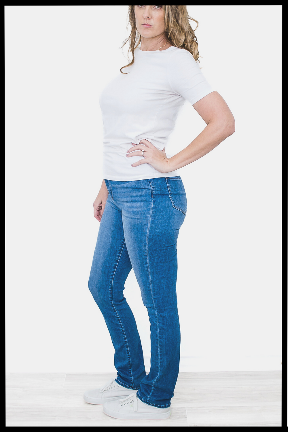 Introducing our new tall women's straight leg jeans in medium wash! If you bought our flare jeans, these are the same fit so stay with your same size. Most women size down because of the stretch.