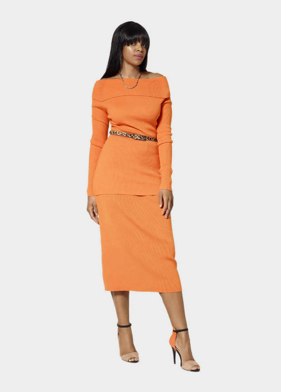 In a marriage of comfort and style, this tall sweater skirt puts a modern twist on a classic pencil silhouette. Crafted in a luxe stretch fabrication with a fine rib knit, it is designed with tall frames in mind and falls right at the knee. Rendered in a bold color, we like this style paired back to our Off Shoulder Knit Top for a truly standout look for the tall lady.