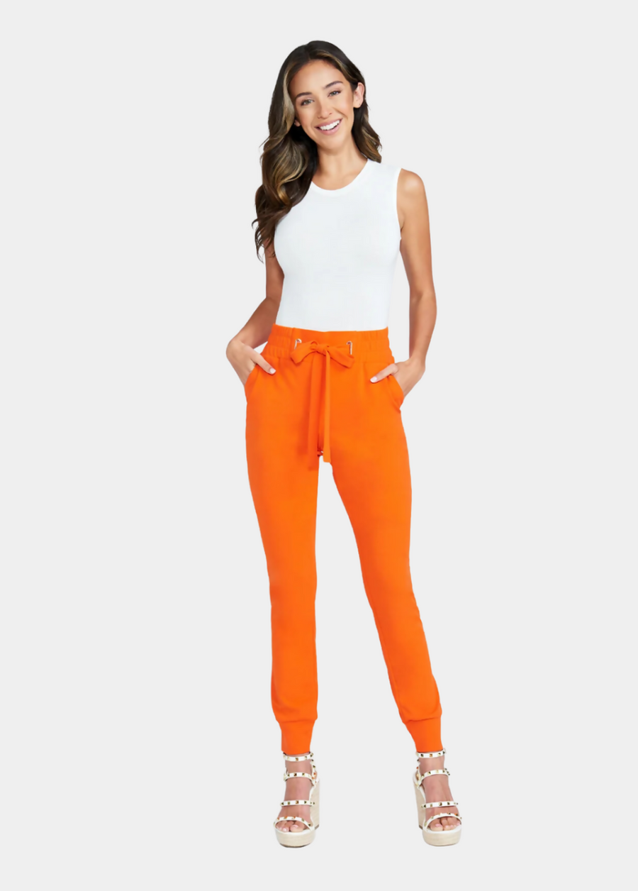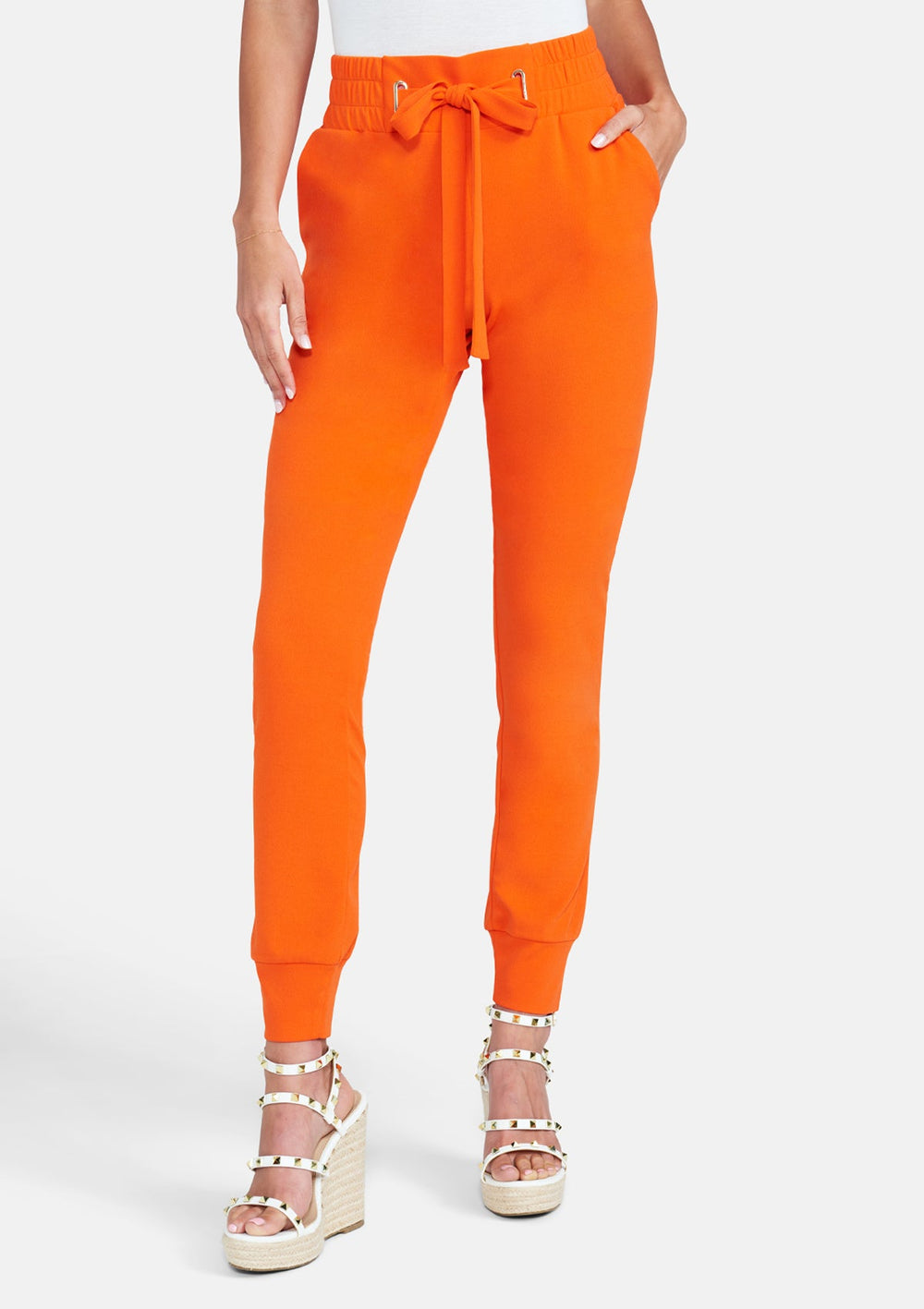 Introducing the Tianna joggers, the perfect combination of style and comfort! Crafted from a luxurious crepe fabric, these stretch-crepe joggers are the epitome of sophistication. Featuring a subtle metal tab and tie waist detail, these joggers offer a touch of elegance to your athleisure look. The comfy elastic waistband and cropped cuffs provide a flattering fit.