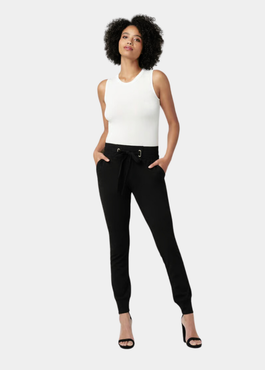 Introducing the Tianna joggers, the perfect combination of style and comfort! Crafted from a luxurious crepe fabric, these stretch-crepe joggers are the epitome of sophistication. Featuring a subtle metal tab and tie waist detail, these joggers offer a touch of elegance to your athleisure look. The comfy elastic waistband and cropped cuffs provide a flattering fit.