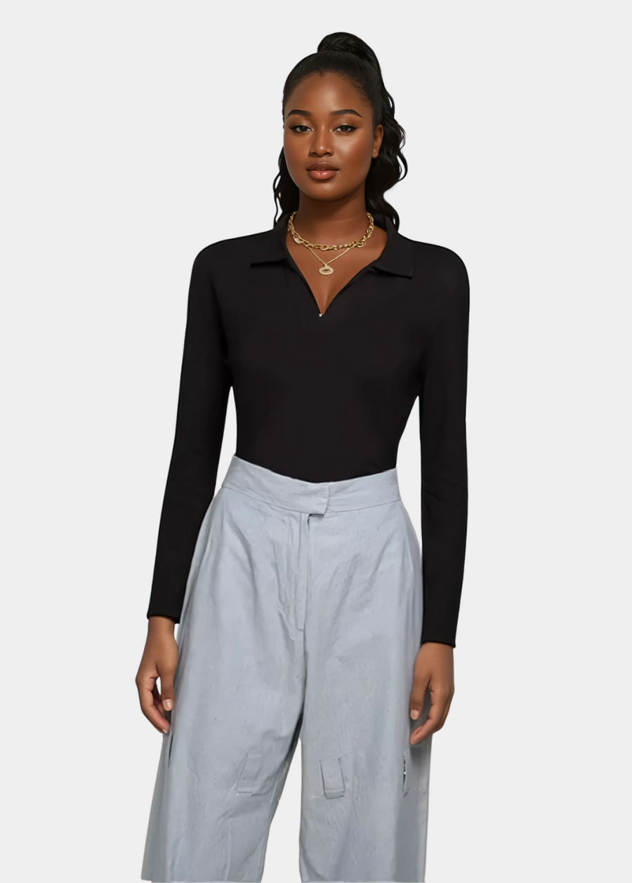 Tall Women’s Collared Long Sleeve Bodysuit – perfect for both workdays and weekend outings.