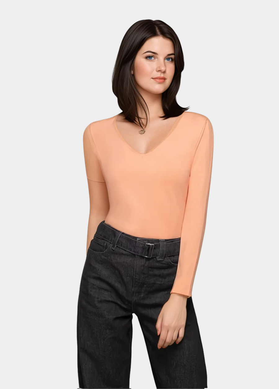 Our Tall Women’s Double Front V-Neck Long Sleeve Tee, is designed specifically for tall women who want a perfect balance of style, comfort, and fit.