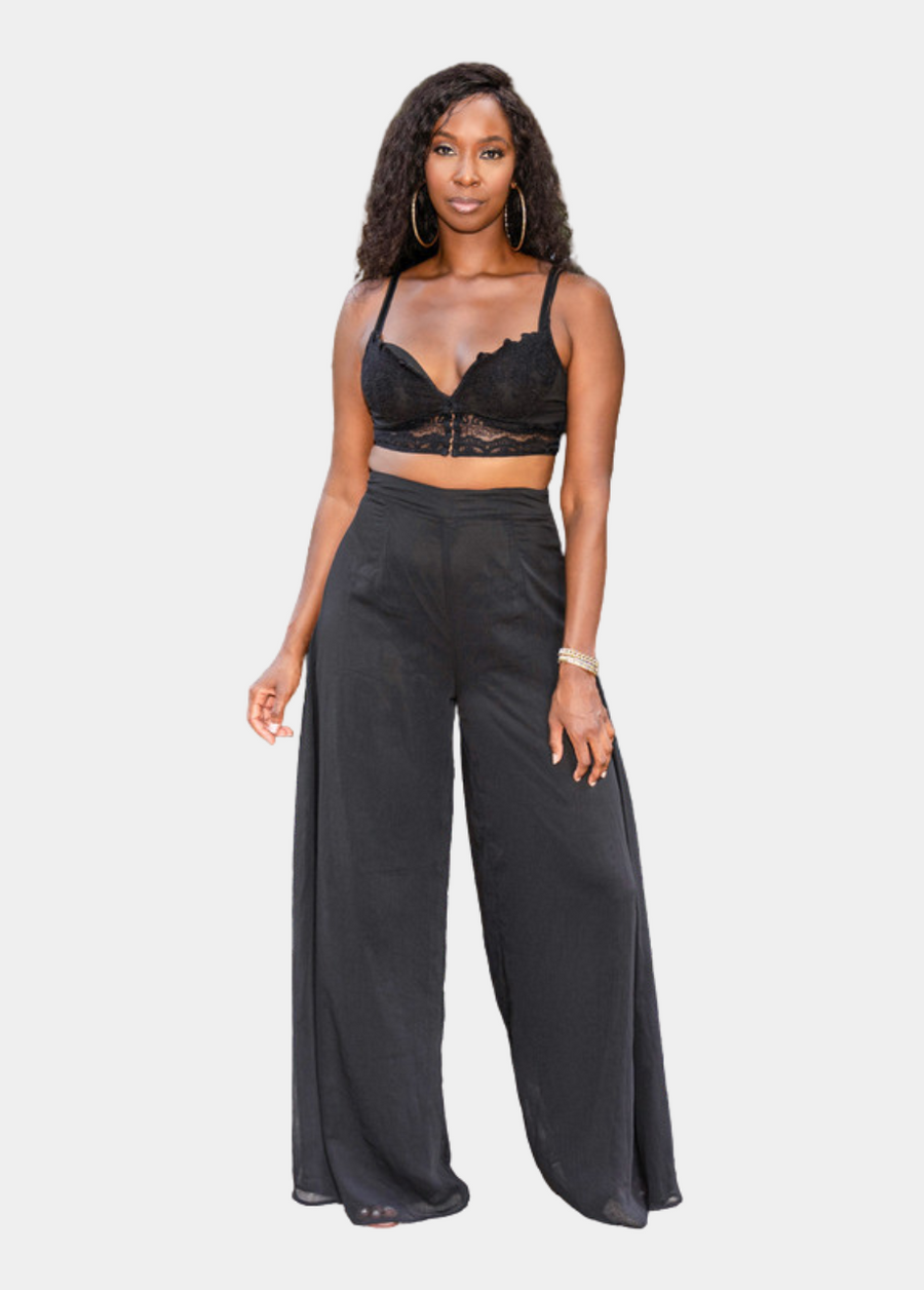 The eye-catching Alani Pants are as versatile as they are stylish, effortlessly transitioning from a chic dinner outfit to a breezy vacation look. The lightweight chiffon fabric offers a graceful, flowing silhouette that moves beautifully with every step.