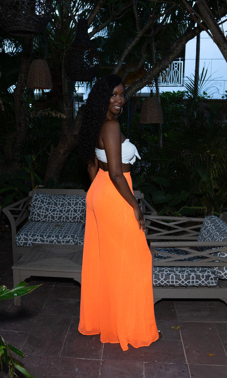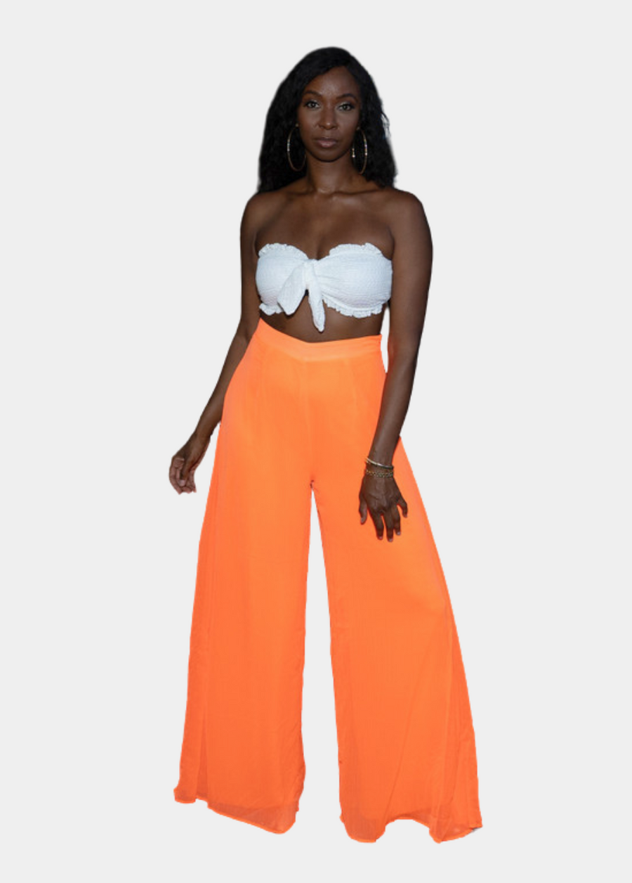 The eye-catching Alani Pants are as versatile as they are stylish, effortlessly transitioning from a chic dinner outfit to a breezy vacation look. The lightweight chiffon fabric offers a graceful, flowing silhouette that moves beautifully with every step. Perfect for adding a pop of color to your wardrobe.