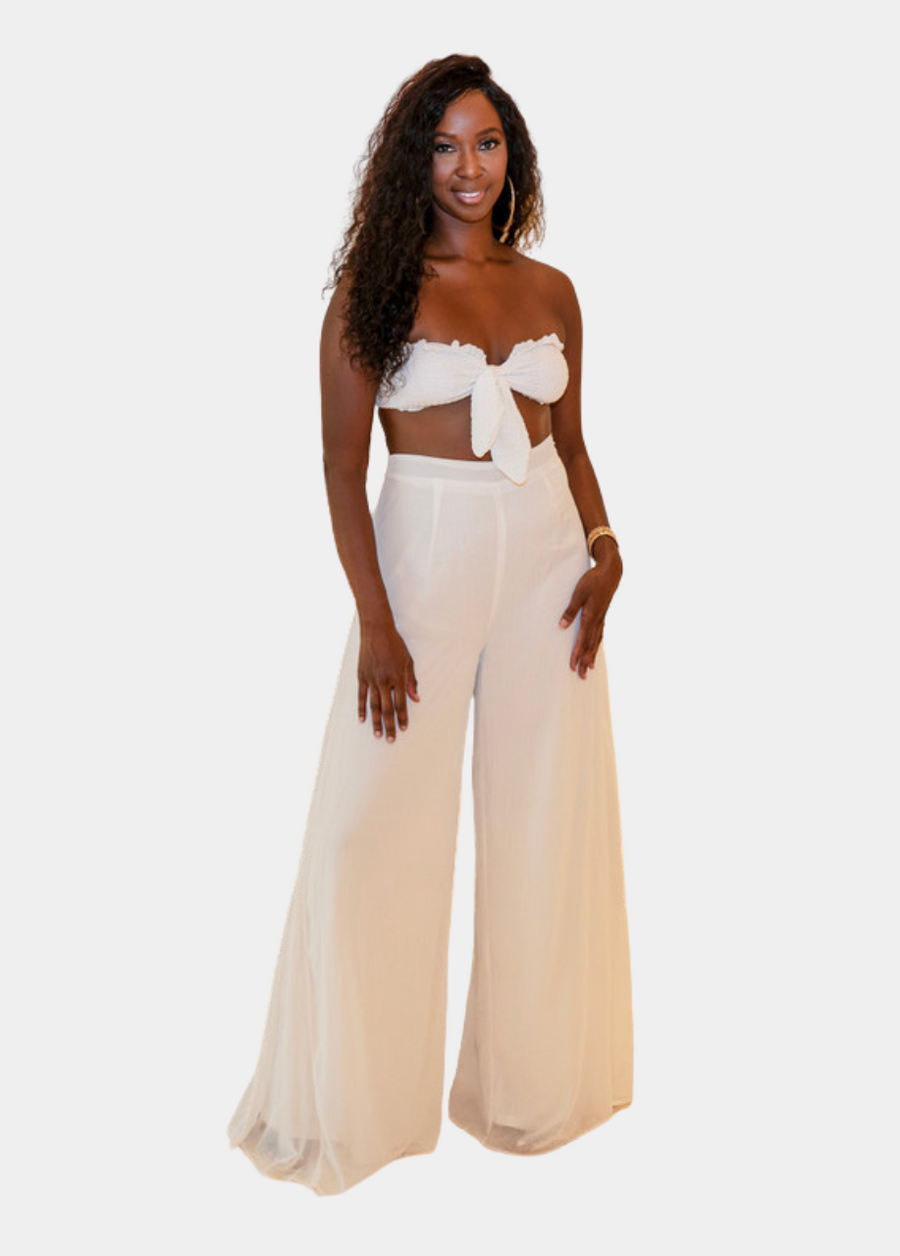 The eye-catching Alani Pants are as versatile as they are stylish, effortlessly transitioning from a chic dinner outfit to a breezy vacation look. The lightweight chiffon fabric offers a graceful, flowing silhouette that moves beautifully with every step.