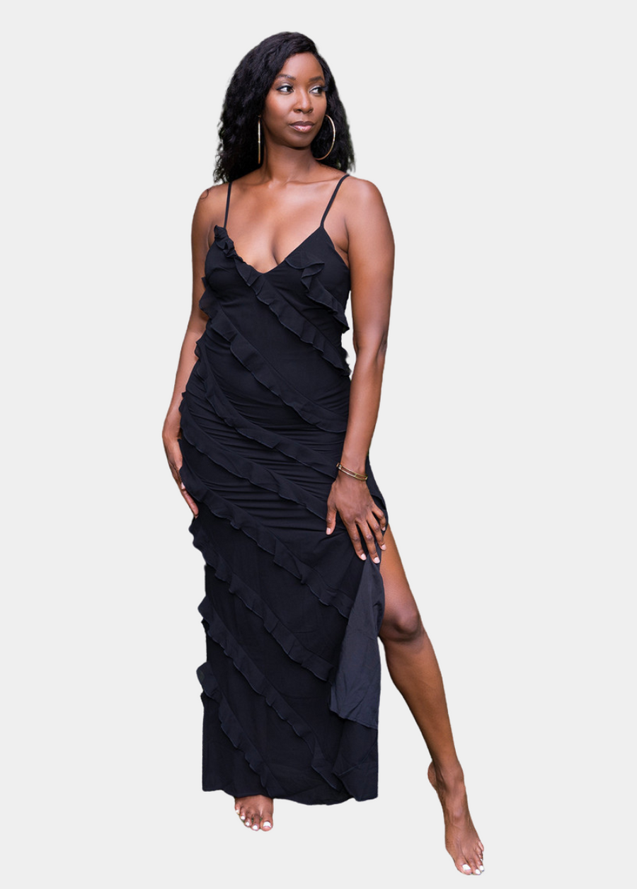 Our enchanting Barcelona Ruffle Maxi Dress is inspired by the passionate flair of flamenco. Perfect for a dreamy vacation or an elegant dinner night, this dress captures the essence of romance and adventure. With cascading ruffles and a fitted silhouette, it’s designed for those late nights out dancing under the stars with your special someone. Embrace the vibrant energy and timeless romance of this stunning piece.