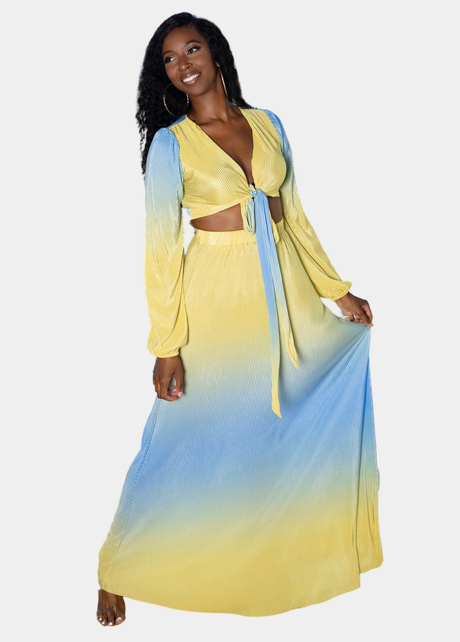 Sunset Beach Ombre Skirt Set - Blue & Yellow