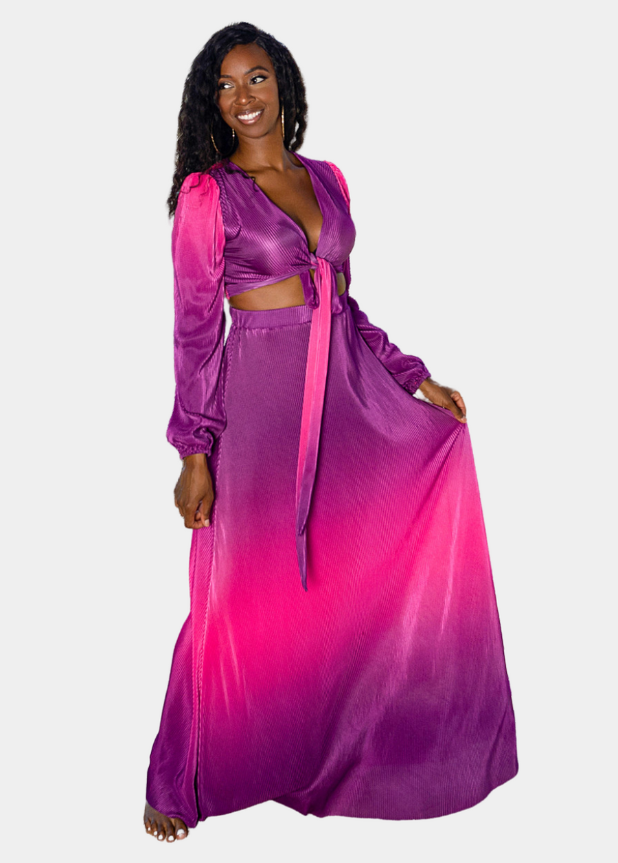 The Sunset Beach Skirt Set is a dreamy ensemble, that captures the essence of tropical elegance. The soft ombre design evokes the beauty of a tropical sunset, and its perfect for a romantic beachside dinner or a sunset stroll. Let this be the set for your go-to unforgettable moments.