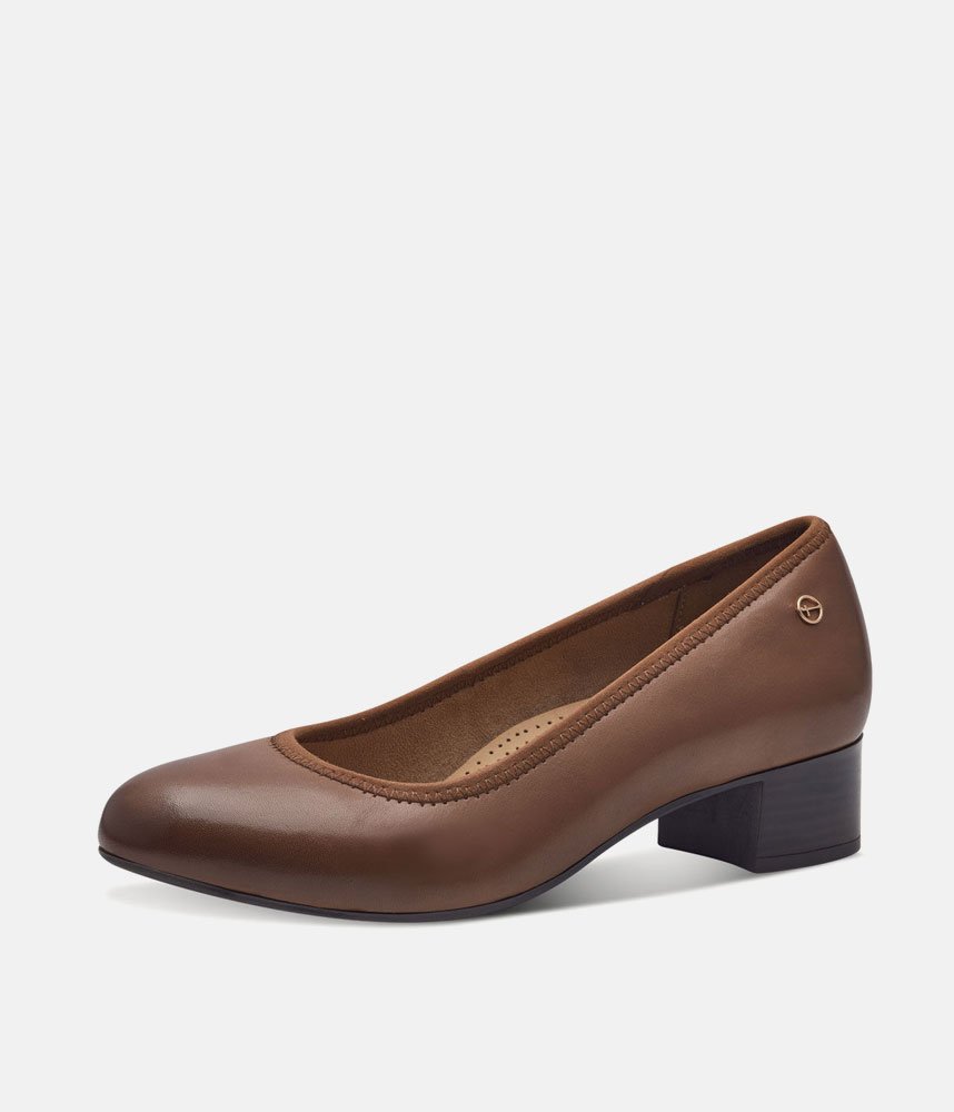 A Classic Block Heel Court shoe style from Tamaris crafted in Leather with leather lining. The sleek elegant design ensures these shoes are easy to style with many outfits for a number of occasions. The low block heel is practical yet stylish and is perfect if you are wearing heels for longer periods of time. The block heel aids with stability and helps to absorb pressure on your foot. This classic style is definitely a wardrobe staple.