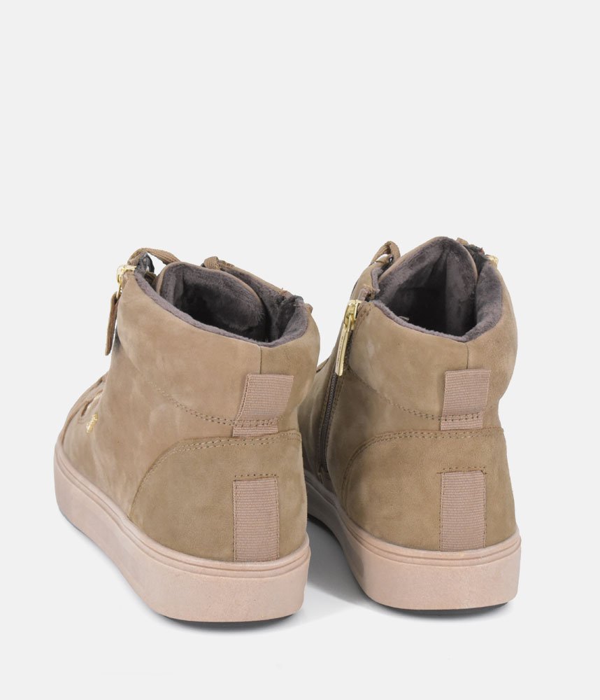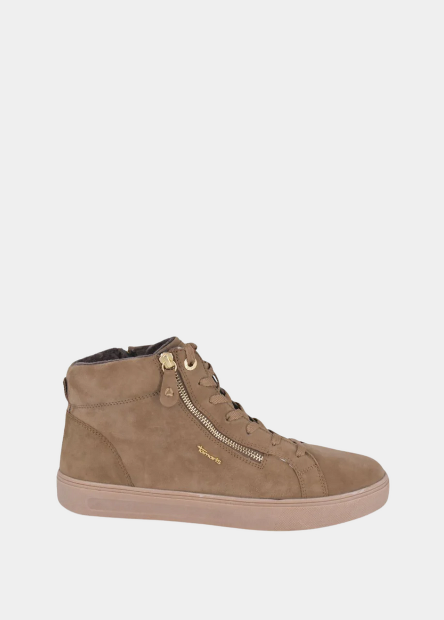 These ankle booties are a Stylish, casual option from Tamaris and will look great with your new season wardrobe. Finished in a classic Taupe Suede with contrasting gold trim and sitting atop a comfortable chunky sole.