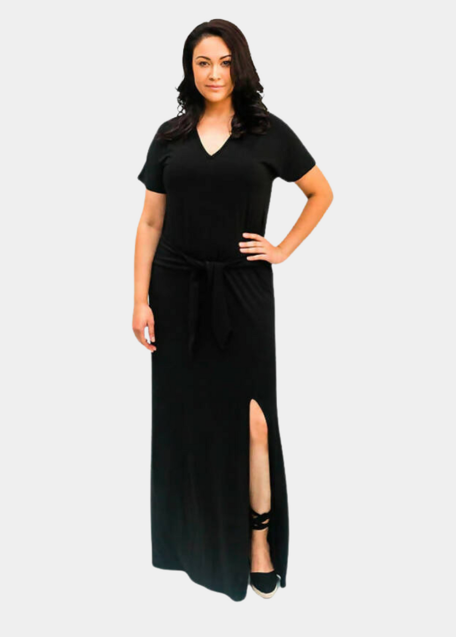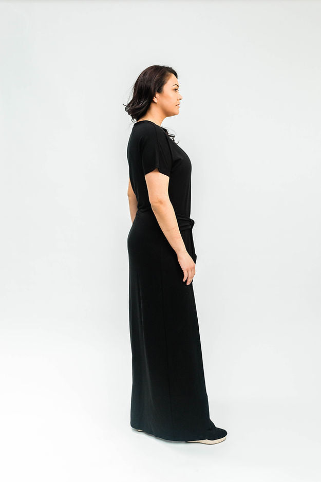 This maxi-dress uses the same kimono-style sleeve and soft jersey material as the Liv Tee, allowing for broad shoulders, long torsos or a larger bust. The tie-waist gives shape and a slit up the leg provides movement and style. Wear it with sandals for everyday casual, dress it up with strappy sandals and a chunky necklace or layer with a denim jacket and sneakers! The options are endless with this dress, you will be wearing it on repeat!