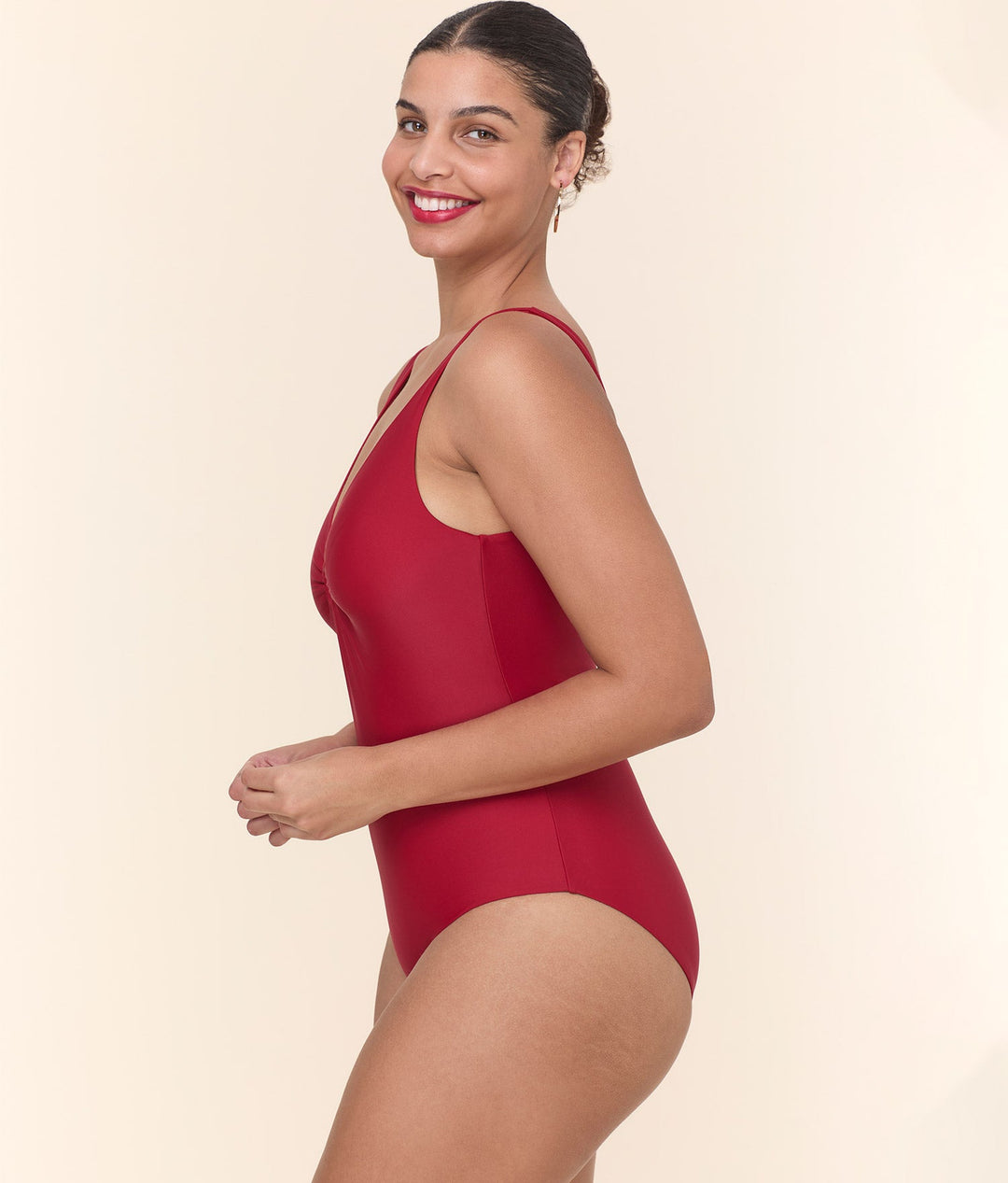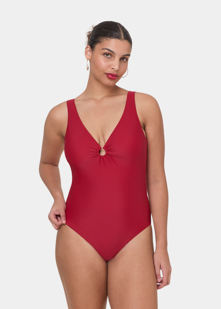 Sculpt and sway in The Bonita, a V-neck stunner with ring detail, medium bust support, and compressive fabric. Full seat coverage for carefree waves and effortless beach elegance.