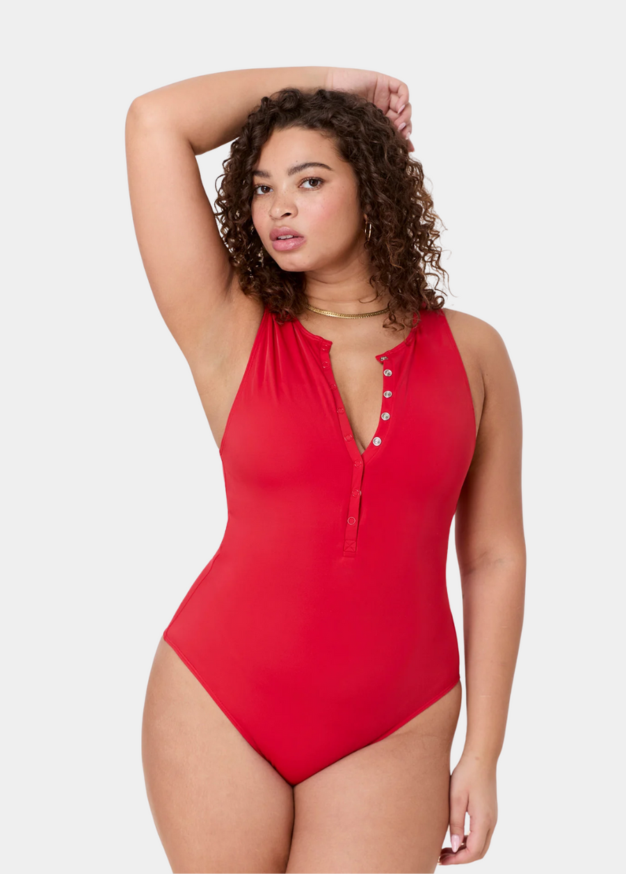 Fun and flexible, this one piece is an effortless mix of sporty and sexy with a high, snap-front neckline for versatile perfection. Fit experts say: “Perfect for your toughest workouts! Disclaimer: Photos shot outside may show a slightly different hue. Please refer to the studio images for the most accurate color.