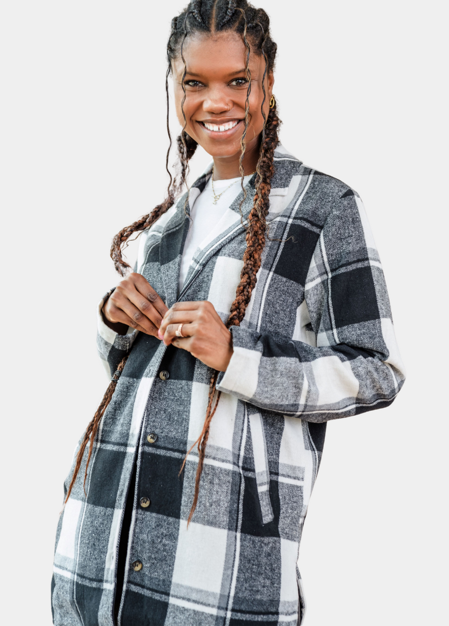 - **Versatile Plaid Design:** With black, grey and white hues, this shacket effortlessly complements any outfit.