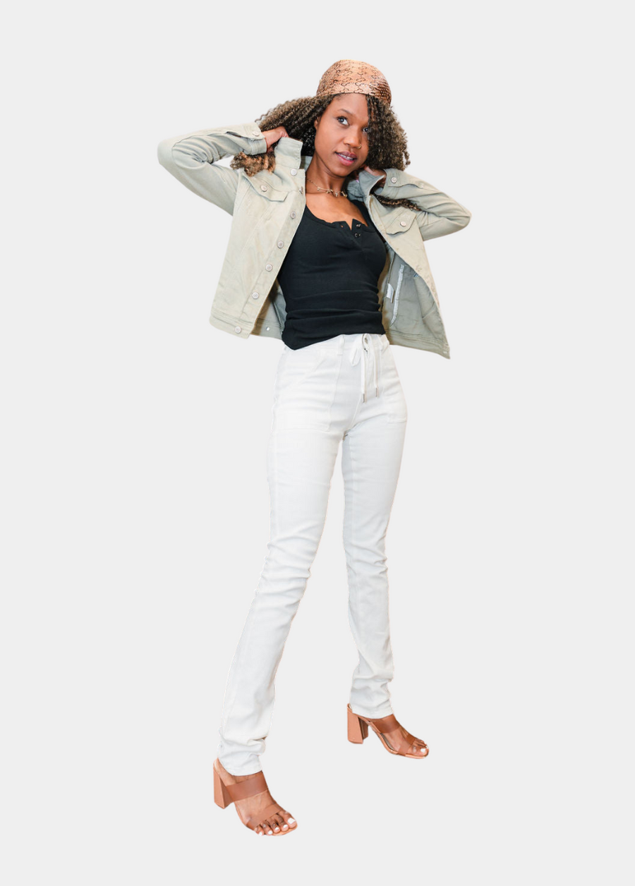Upgrade your casual wardrobe with the perfect mix of comfort and style! Our White Denim Joggers offer a relaxed yet flattering fit, designed with long inseams and a modern tapered leg (option to cuff). Pair them with the Light Olive Denim Jacket, a versatile layering piece with an elevated fit made just for tall women. Whether you're running errands or heading out for brunch, this bundle is the perfect blend of laid-back and chic—all while saving when you shop together!