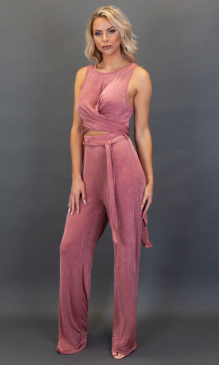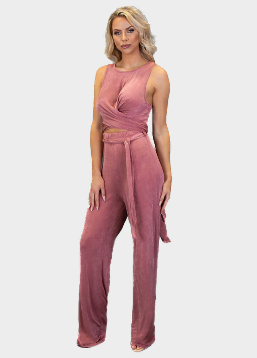 This super stylish and easy-to-wear set takes the guess work out of getting dressed. Both pieces are made of a light, flowy fabric that is perfect for the Spring and Summer months. Plus, the relaxed fit of the pants allows you to walk in comfort and style all day. The waist tie of the pants and the wrap of the shirt help to accentuate your waist and give you that sexy silhouette.