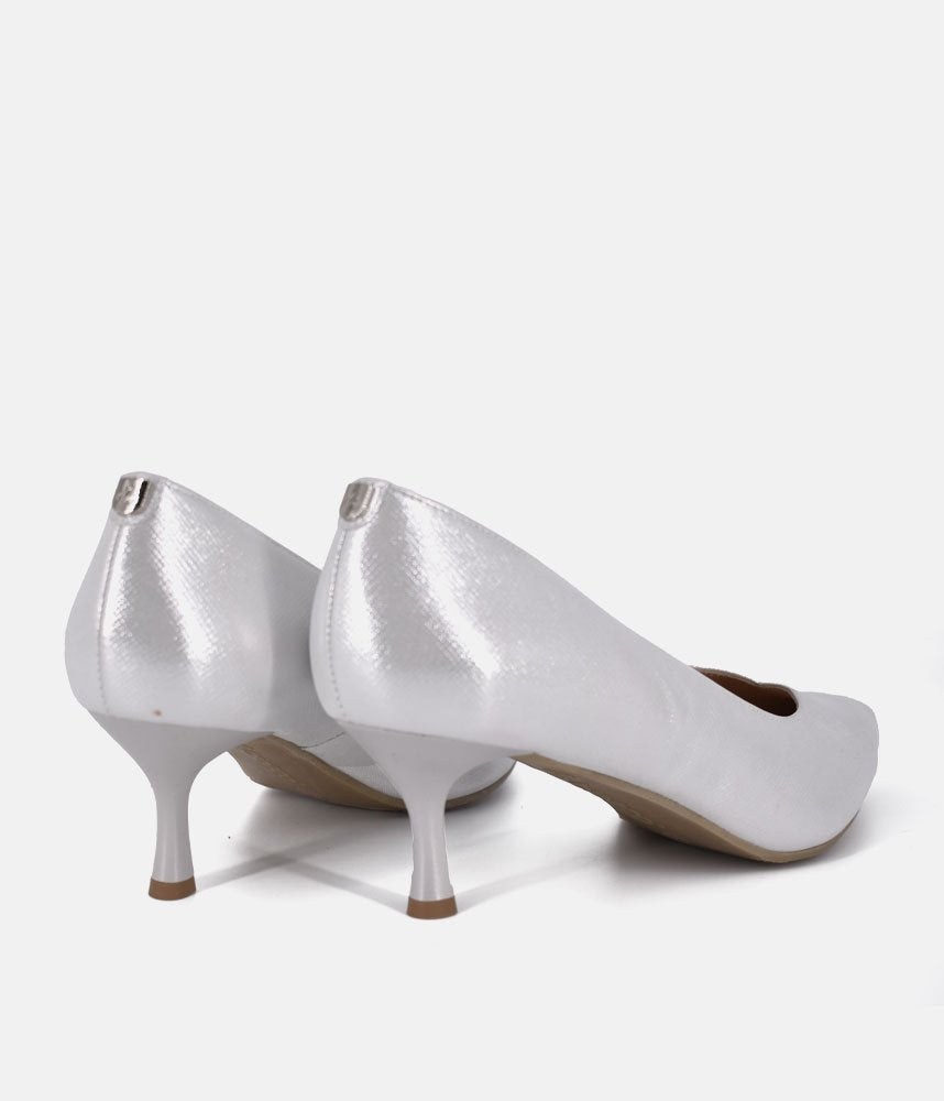 Bioeco Silver Shimmer Leather Stiletto Heels
