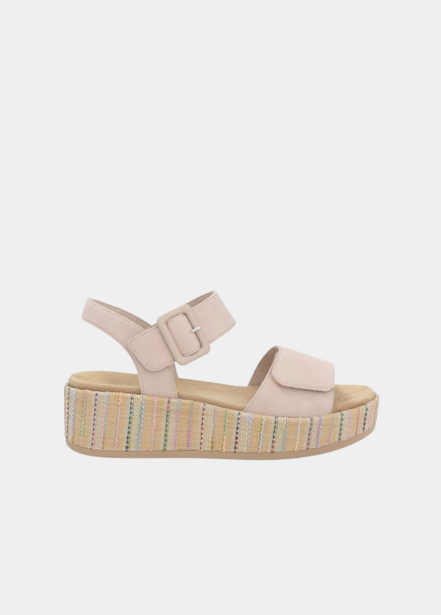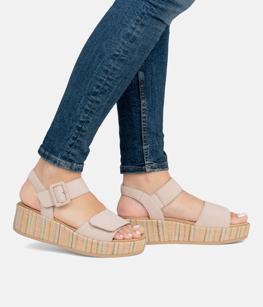 This is a gorgeous New Sandal from Remonte and features an adjustable velcro strap for a customizable fit, with a beautiful contrasting print design on the platform sole, and a shock-absorbent footbed to keep your feet comfortable and supported. Ideal to pack for a vacation to pair with just about any outfit from shorts to long dresses and Jeans.