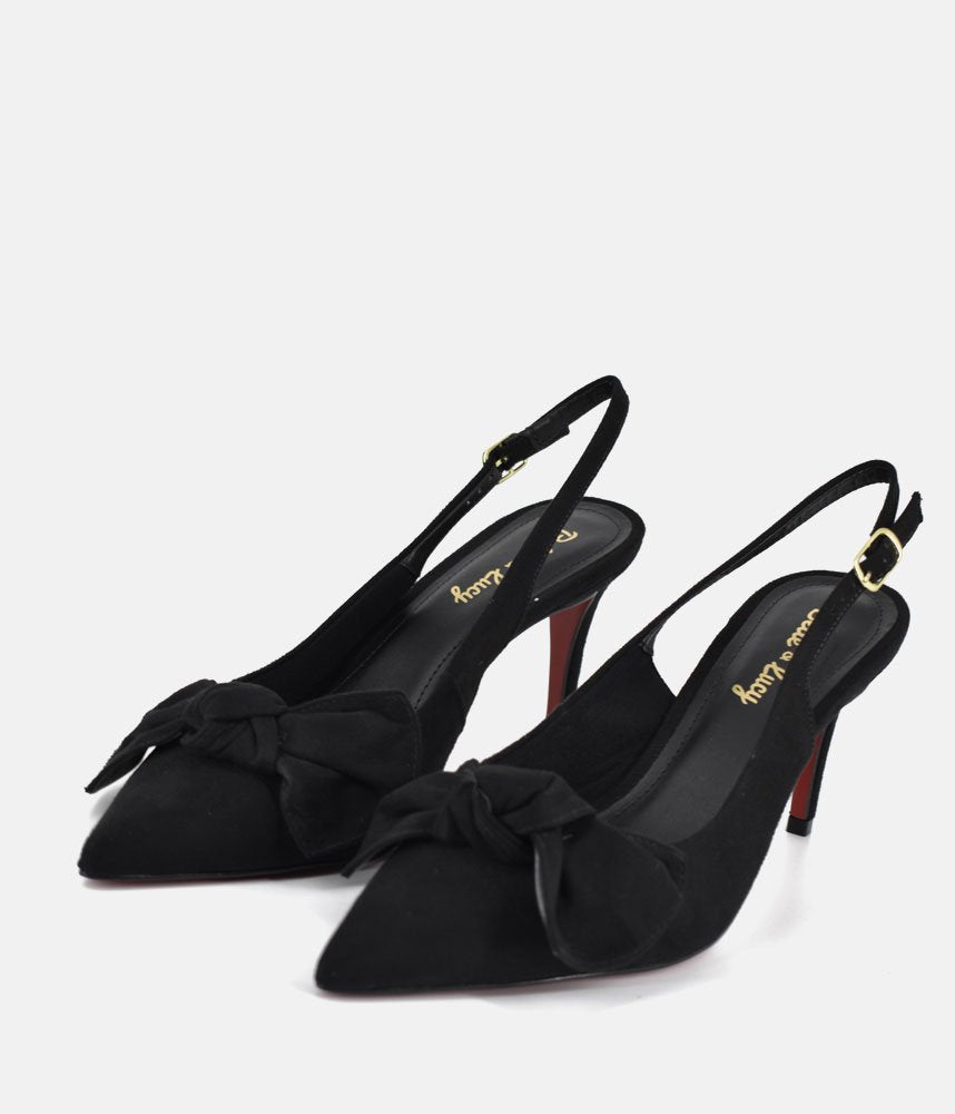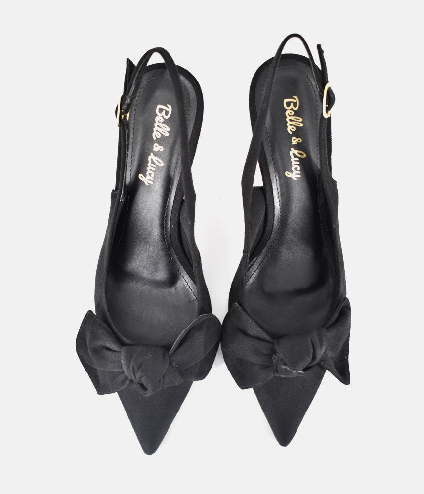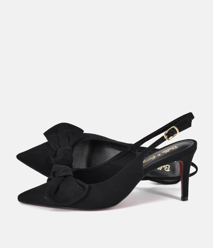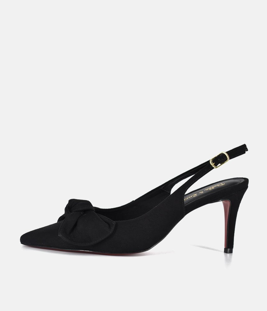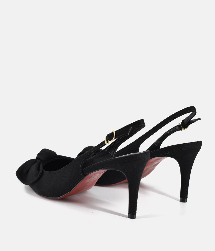 Step into timeless style with these elegant black slingback heels. Featuring a feminine bow detail and a sleek silhouette, these pumps are a wardrobe essential for everything from corporate meetings to evening galas.