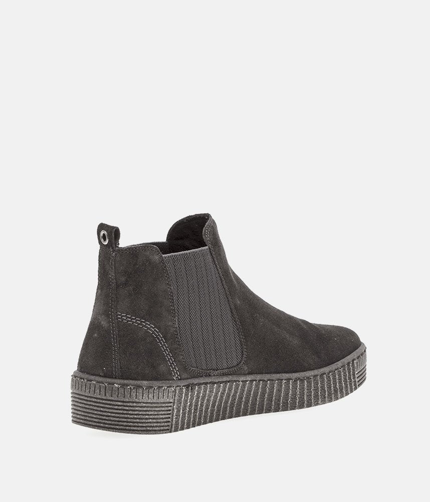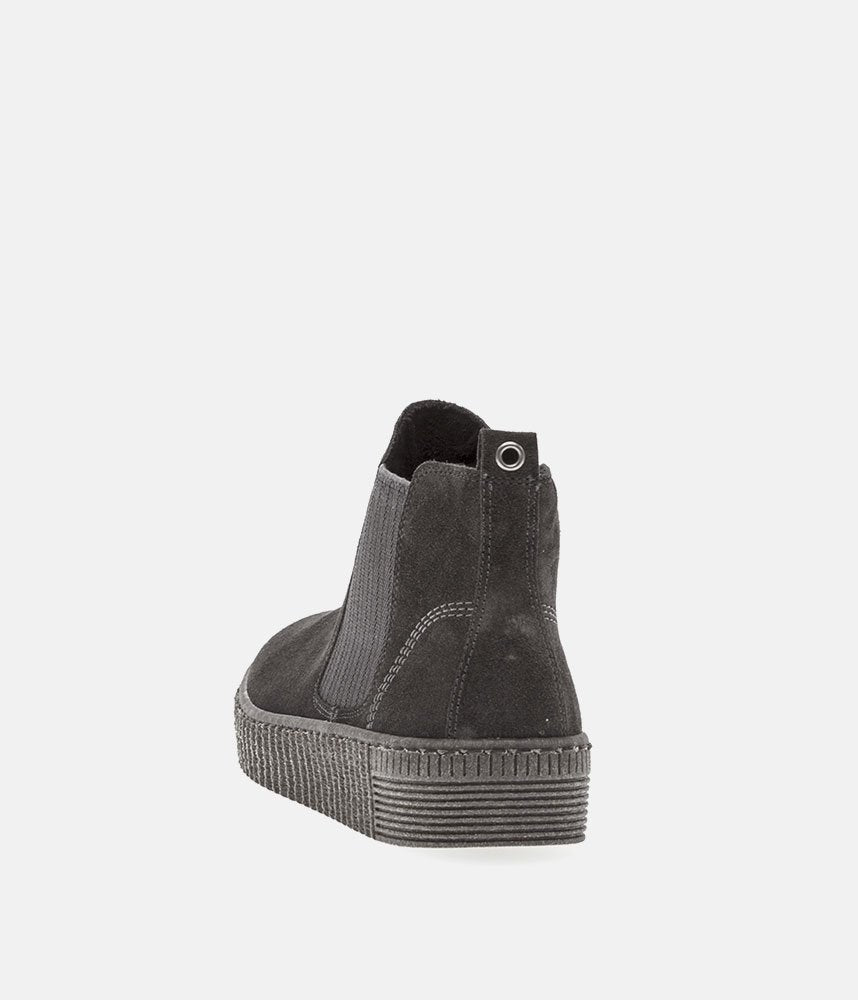 This style from Gabor is a modern twist on the classic Chelsea boot silhouette. Featuring twin elasticated side gussets and heel loops and the platform chunky rubber soles features grooved edging. These boots will keep you cosy with the cosy micro fibre lining and the removable insoles are handy if you want to replace with your own orthotics.