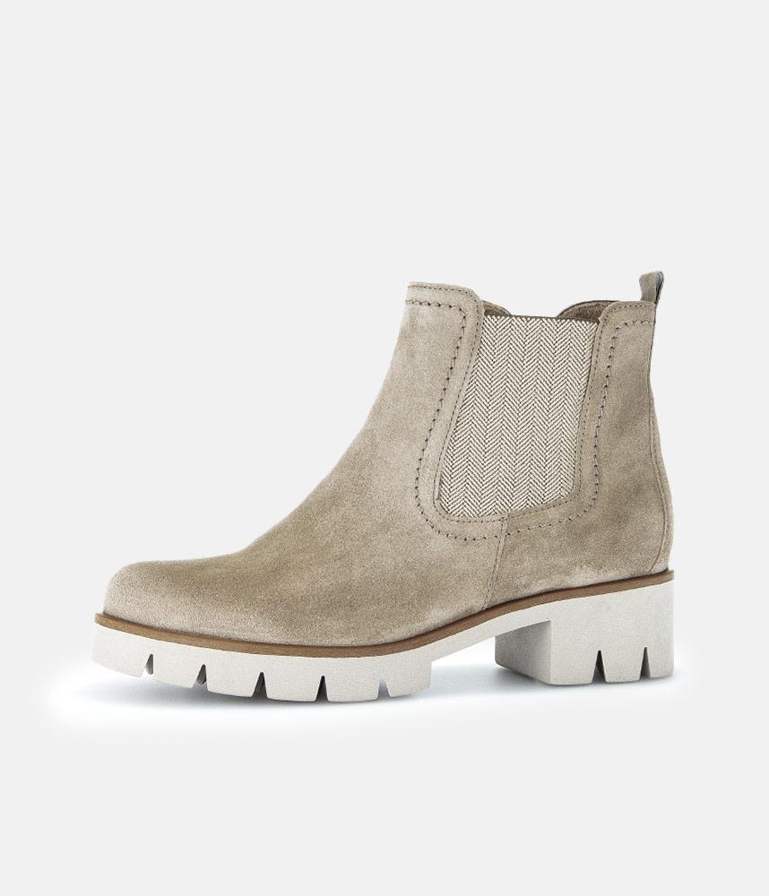 These Gabor Chunky Chelsea style ankle boot crafted from Premium Velour are perfect for pulling on in a hurry to add a fashionable touch to any outfit. Featuring a stretch panel for a snug fit and a side zip for easy on and off. A chunky cleated sole adds a fashionable contrast while also adding additional grip and traction.