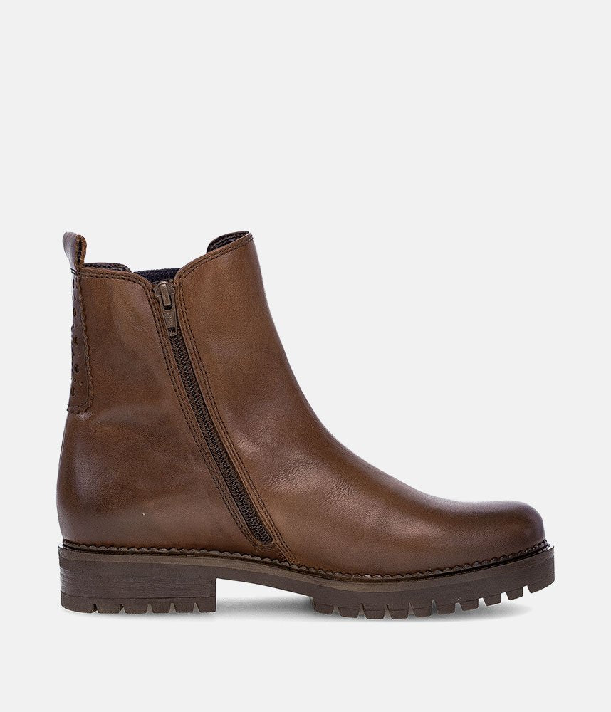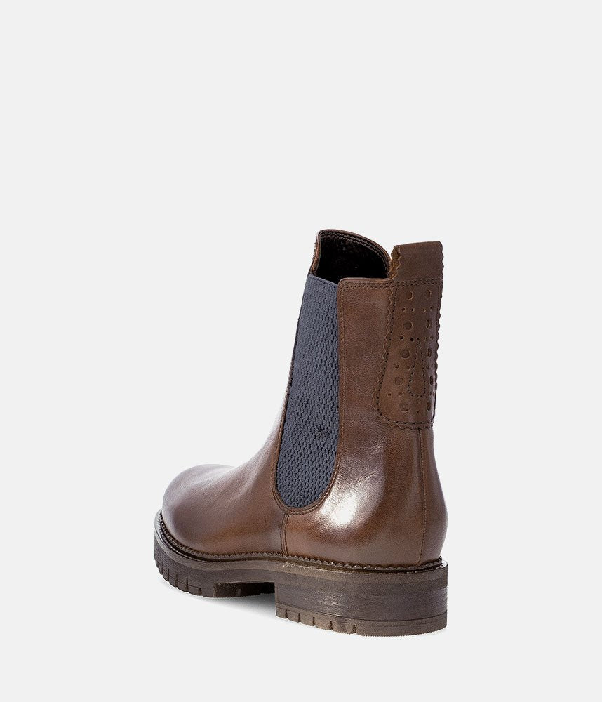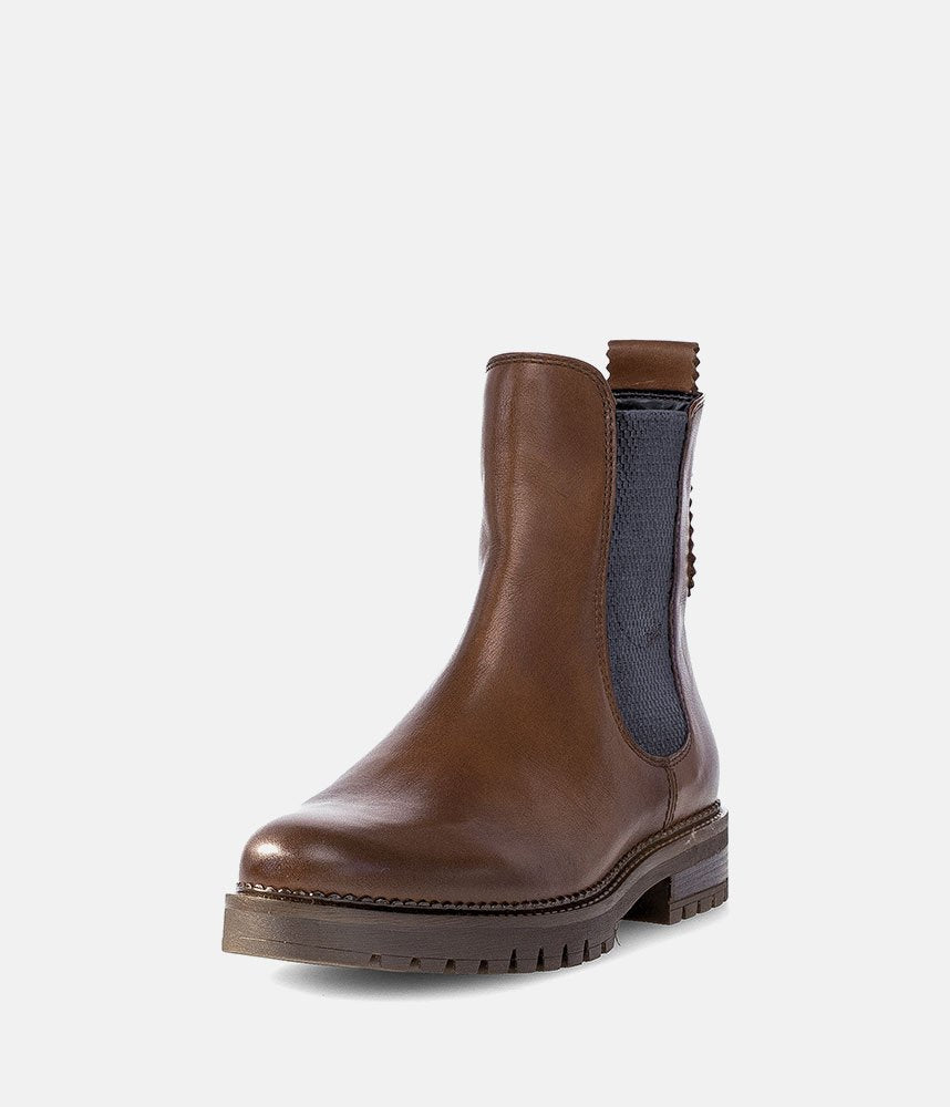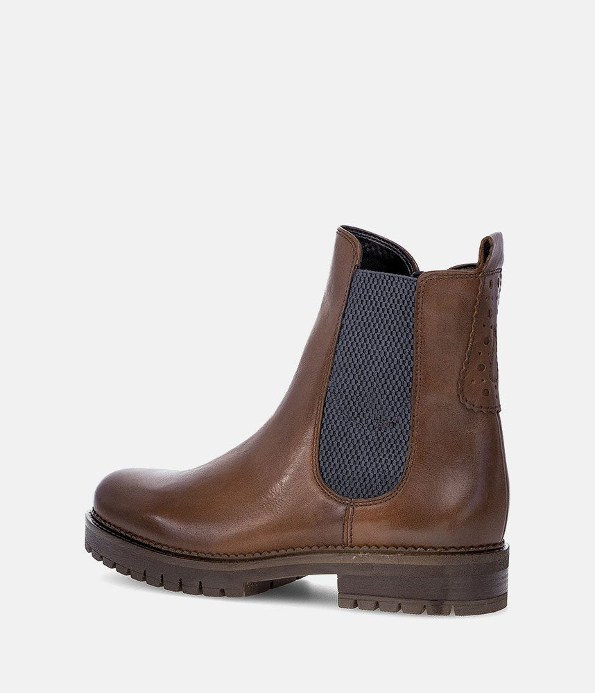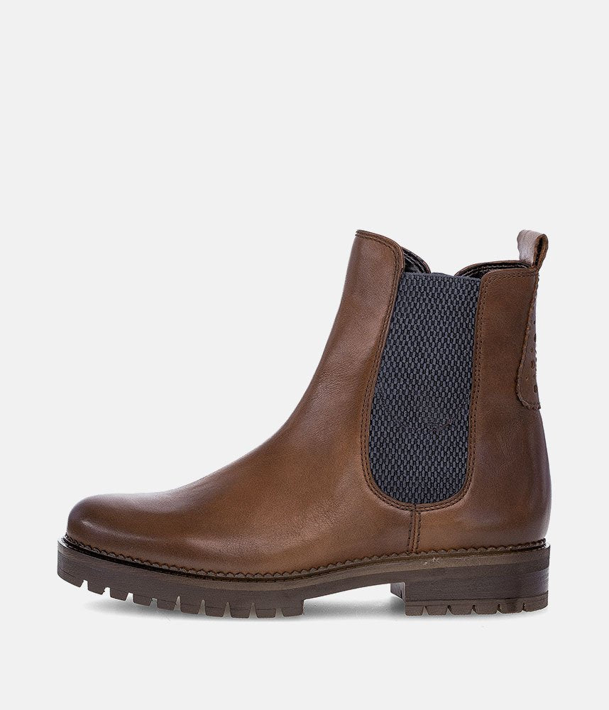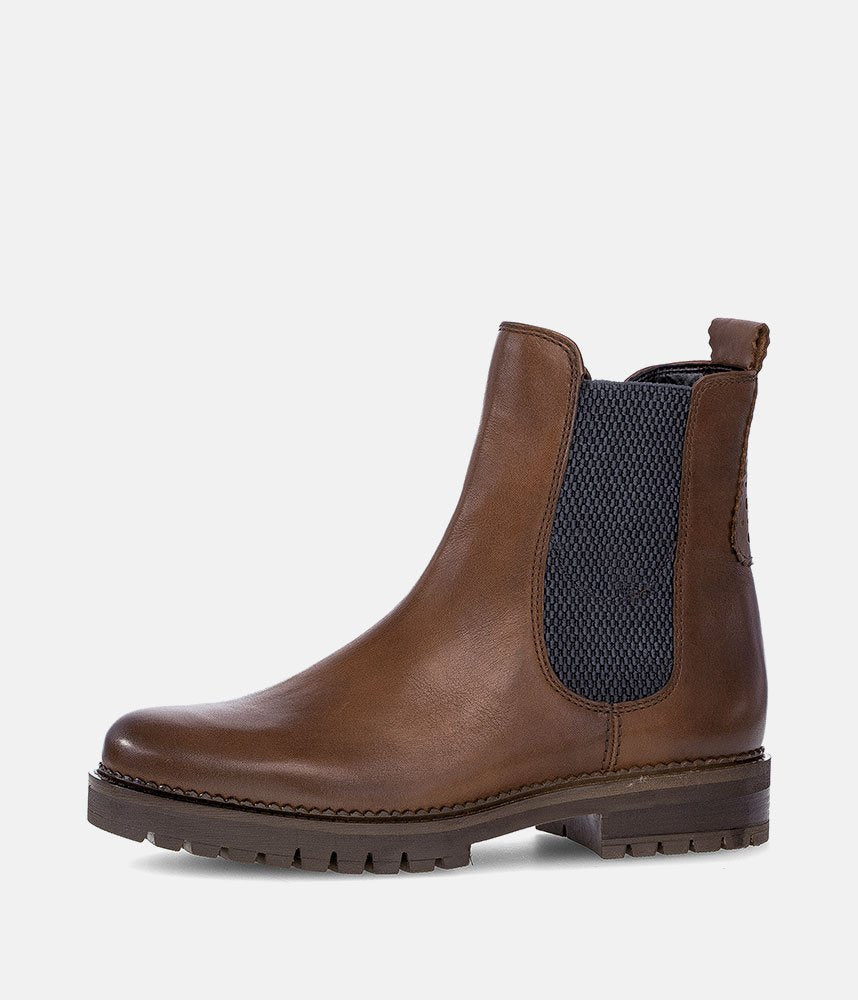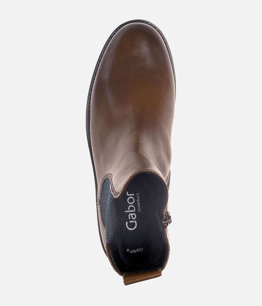 This is a contemporary premium Leather Chelsea style ankle boot from Gabor with decorative strap detail on the upper. Micro fibre fills the linings of the Chelsea boot and provide support and comfort. The contrasting Navy elasticated gussets provide a little stretch to adjust your fit and the side zip ensures easy on and off.