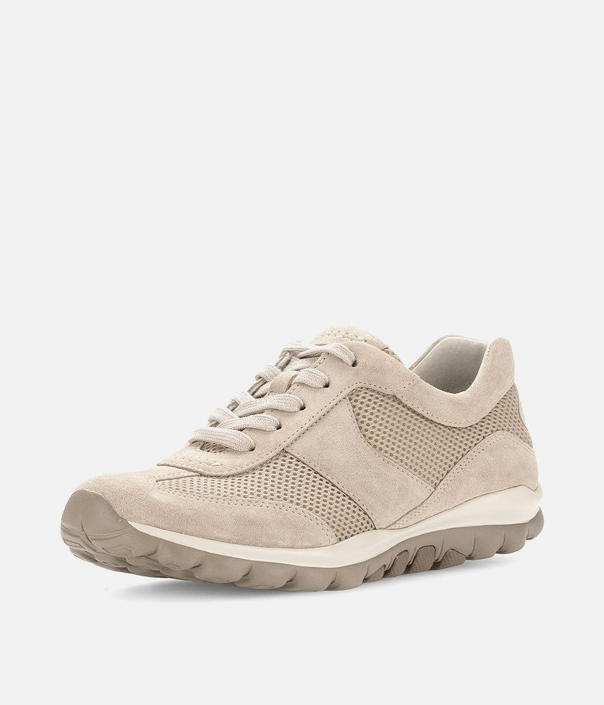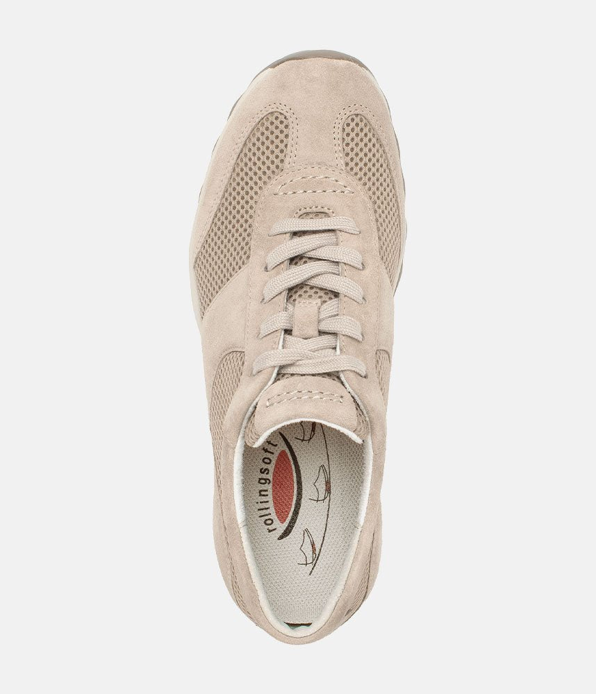 A Modern sneaker style from Gabor, incorporating Gabor’s ‘Rolling Soft’ Sensitive outsole technology. With rolling soft, Gabor has developed shoes that not only look fashionable but can also do something for your well-being with every step you take. The result: a comfortable, modern shoe with a roll-over effect that can improve posture both when walking and standing.