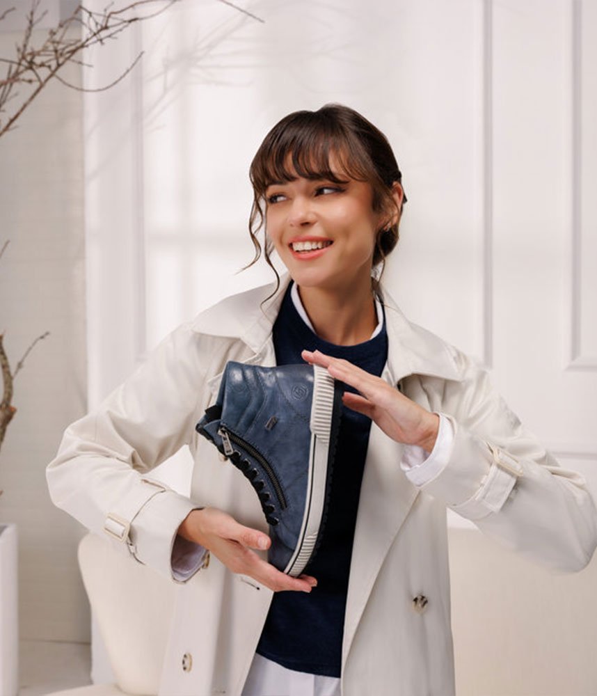 These high-top sneakers are the perfect blend of a boot’s durability and a sneaker’s comfort. The rich blue leather finish gives them a sophisticated look that’s both rugged and refined. A dual closure with laces and a side zipper provides both an adjustable fit and a quick, easy way to get them on and off.