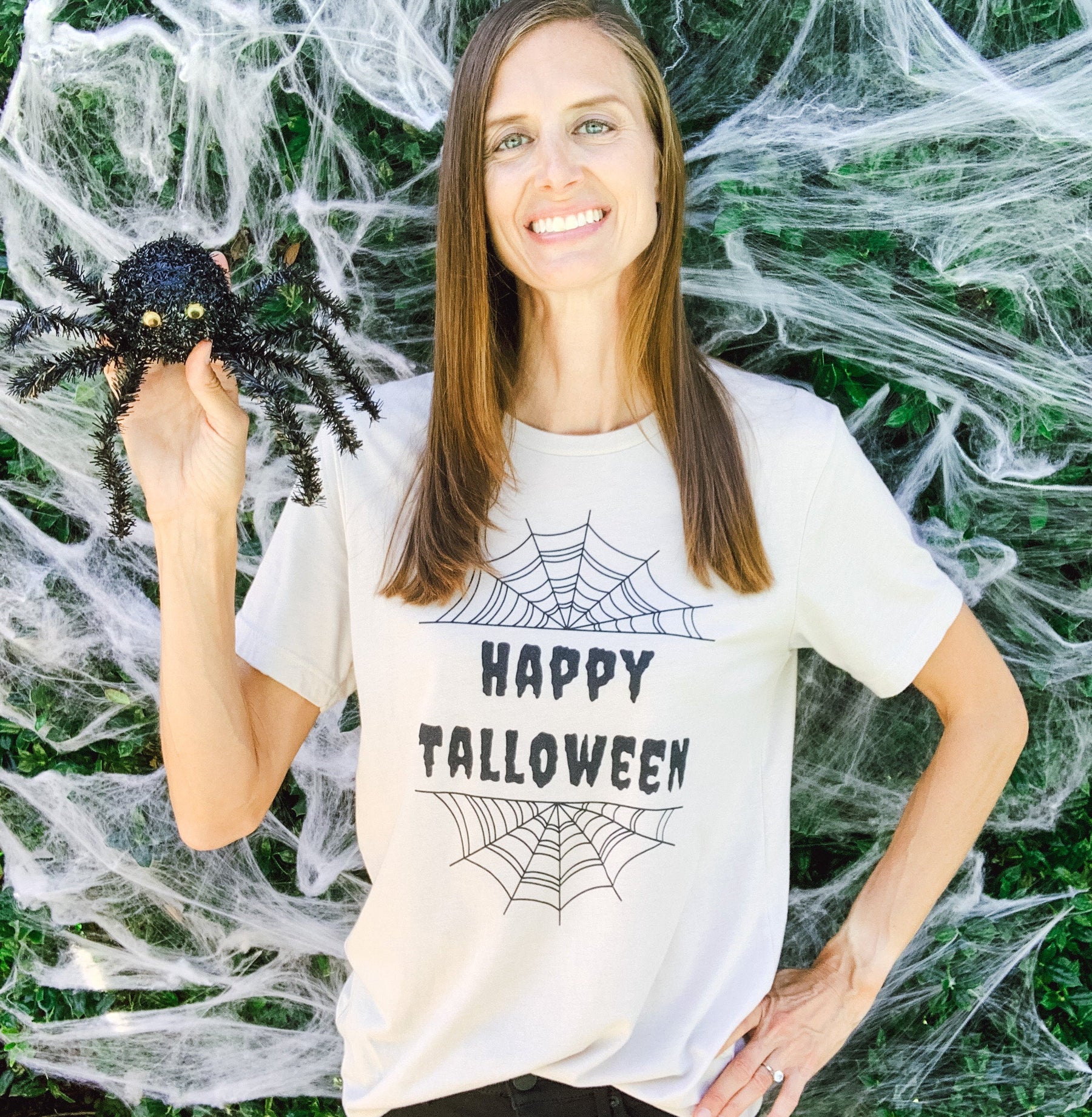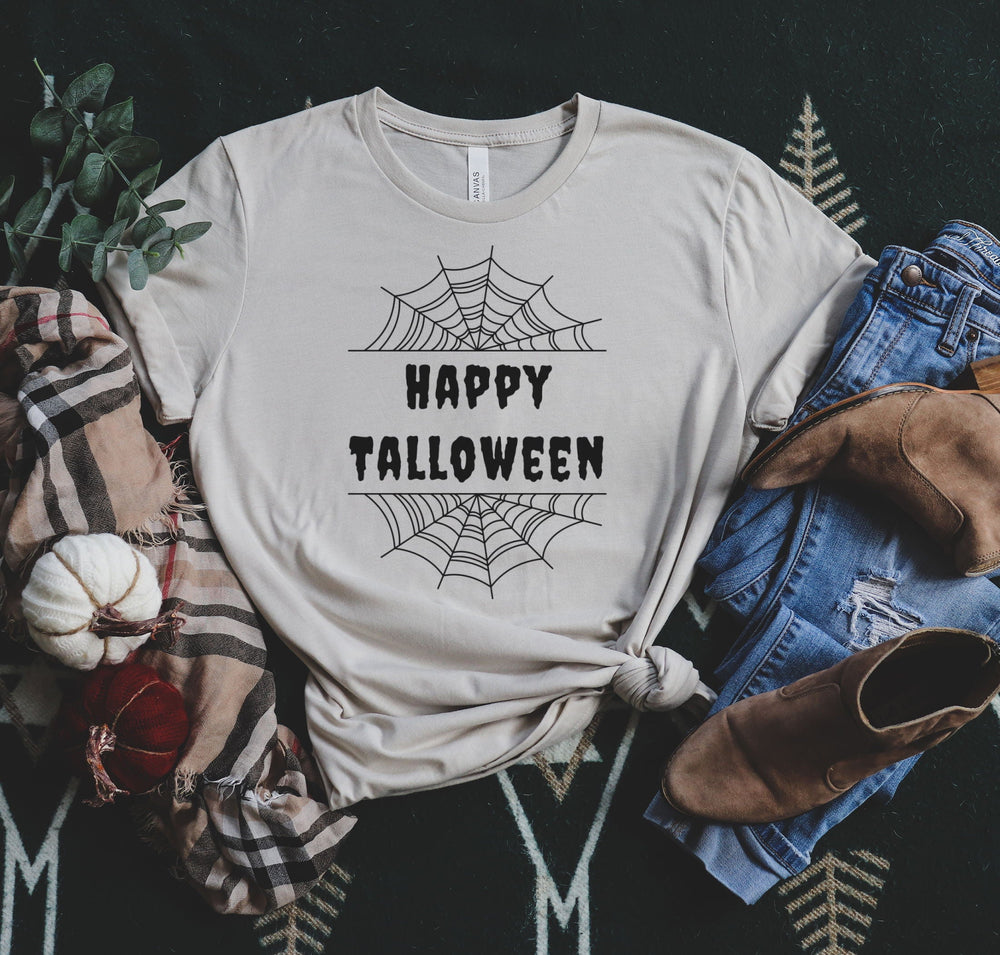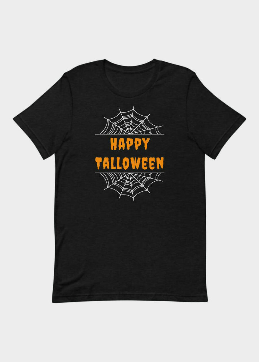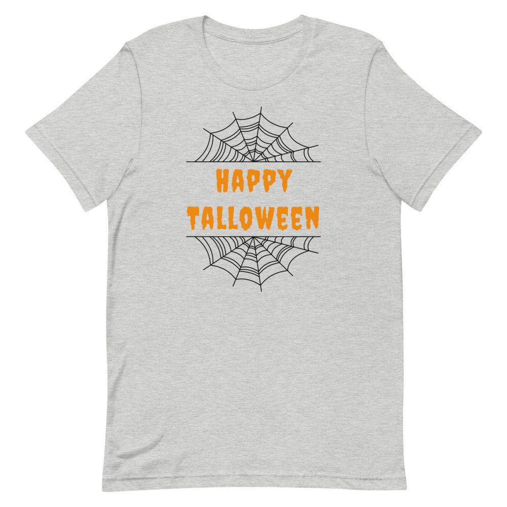 Get into the spooky spirit with this festive, tall-inspired Halloween t-shirt. Featuring creepy cobwebs and a clever twist on the phrase "Happy Halloween", it's sure to be a hit! Our tees come in a long length for your long torso and a super soft material that you will love.