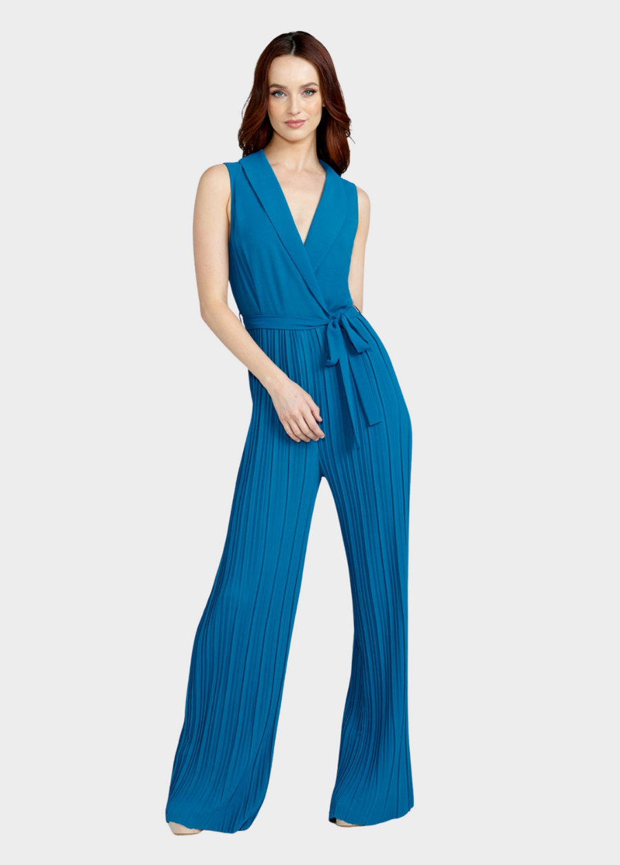 Introducing the stunning Ashley Pleated Jumpsuit - a contemporary spin on the timeless tuxedo style top, featuring a bold, dramatic silhouette with wide pleated hems. Designed to make you feel confident and stylish for any occasion, this jumpsuit is made from an airy, bouncy fabric that combines comfort with chic sophistication. The pleated accents lend an air of refinement to this modern piece, keeping it on-trend and perfect for any fashion-forward individual.