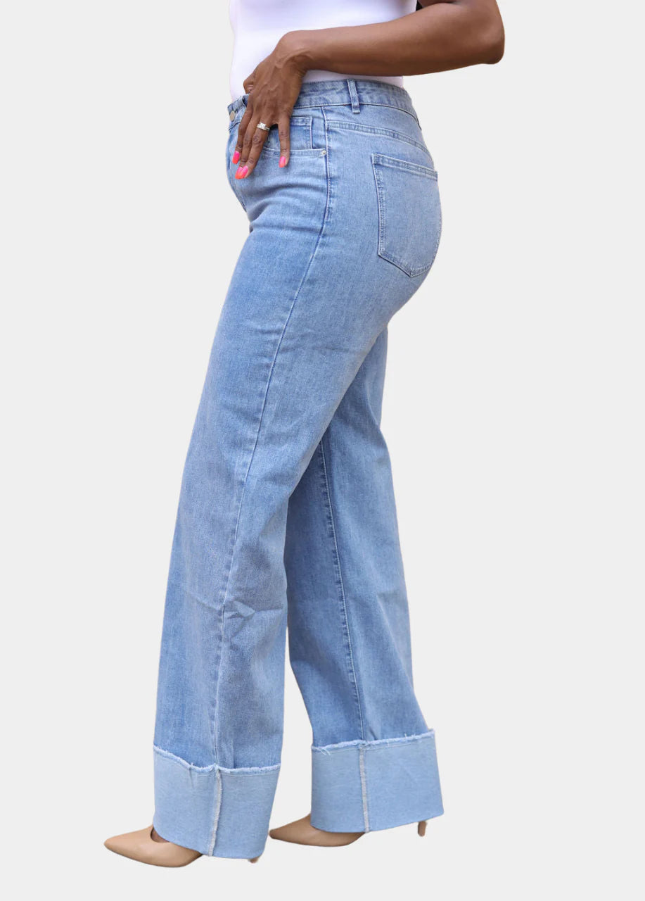 The wide cuff adds a trendy touch, making these jeans a must-have staple for every tall woman's wardrobe. Elevate your look with confidence and embrace your height in style with our tall girl jeans.