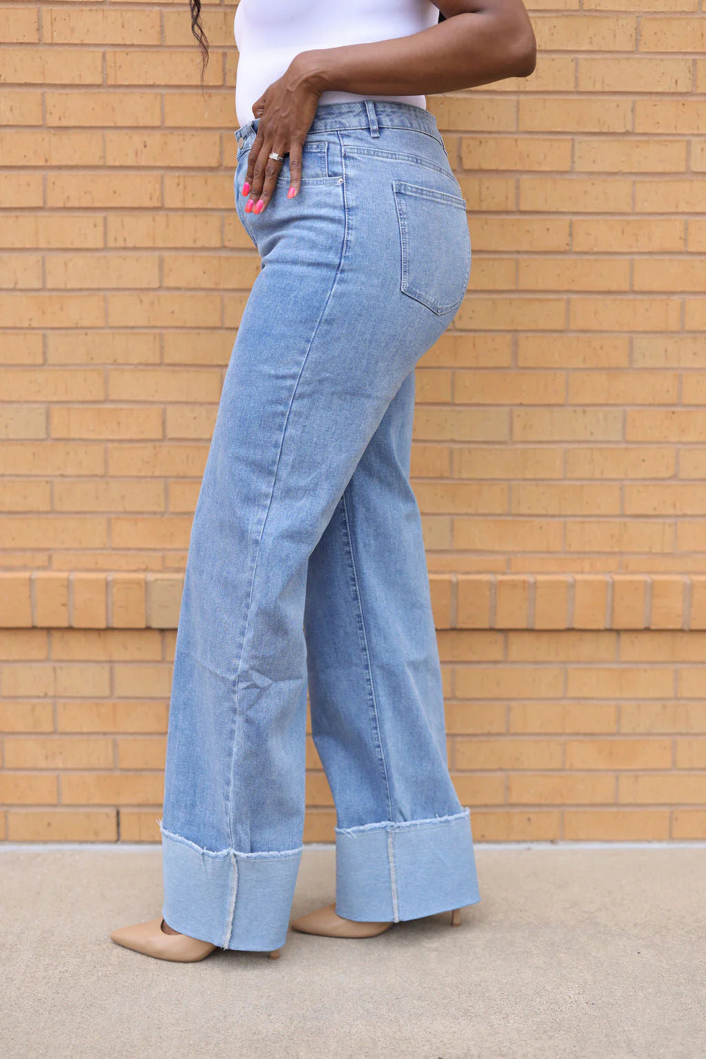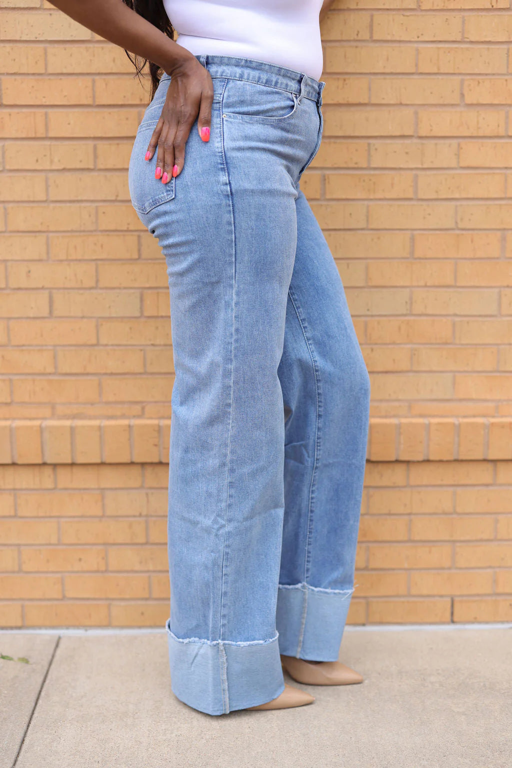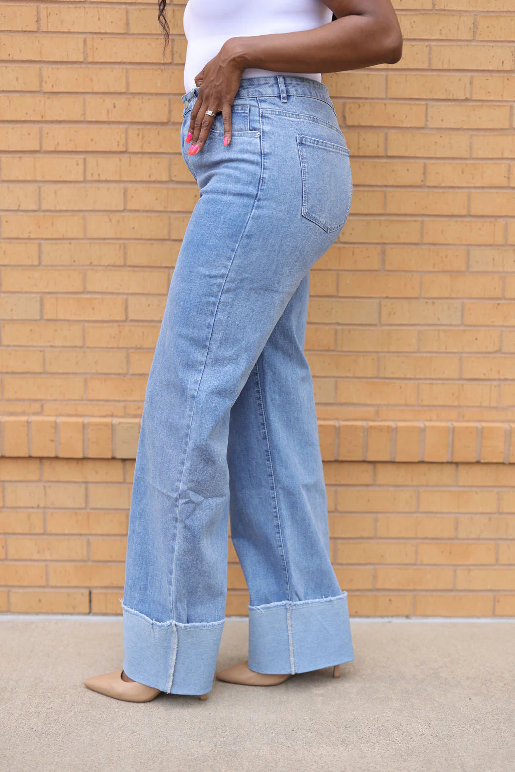 Introducing our latest addition to the tall girl fashion scene: our chic tall girl jeans with a wide cuff!