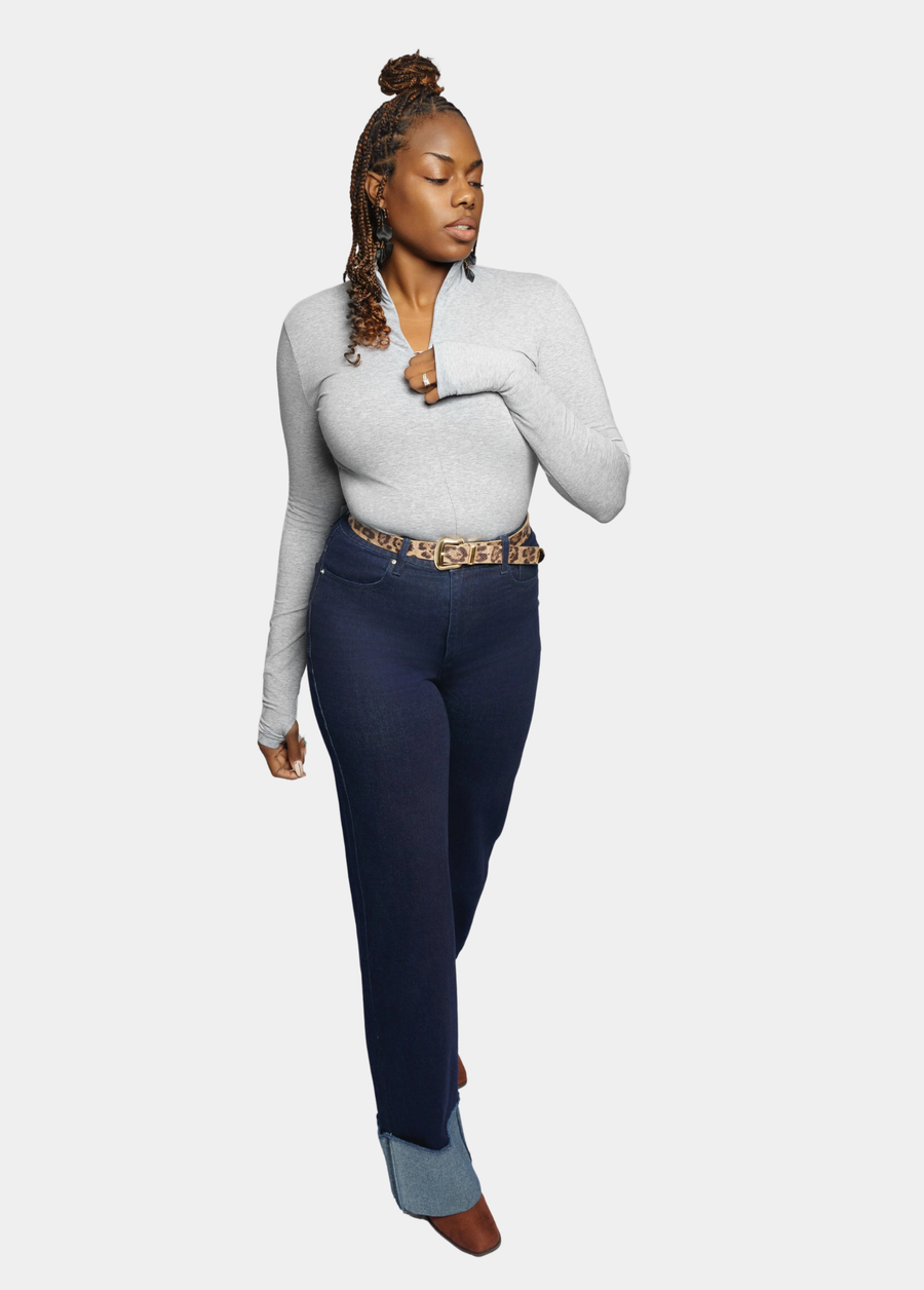 Long Torso Long Sleeved Bodysuit - Grey